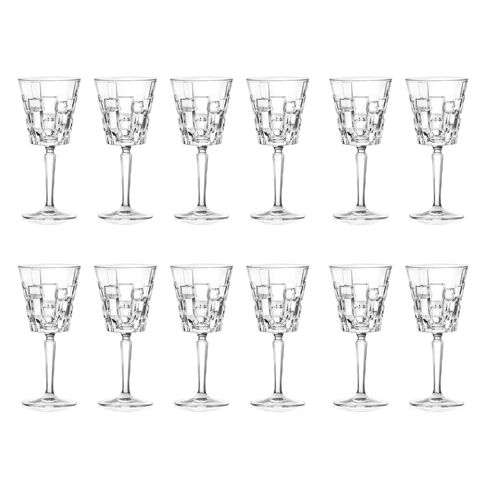Juego de copa de vino o agua de cristal ecológico con decoración de talla de 12 piezas fabricada en Italia.