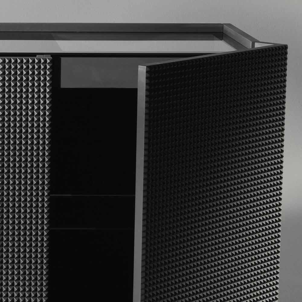 Creencia de diseño moderno negro con 2 puertas y cajones retirada Flora, fabricado en Italia