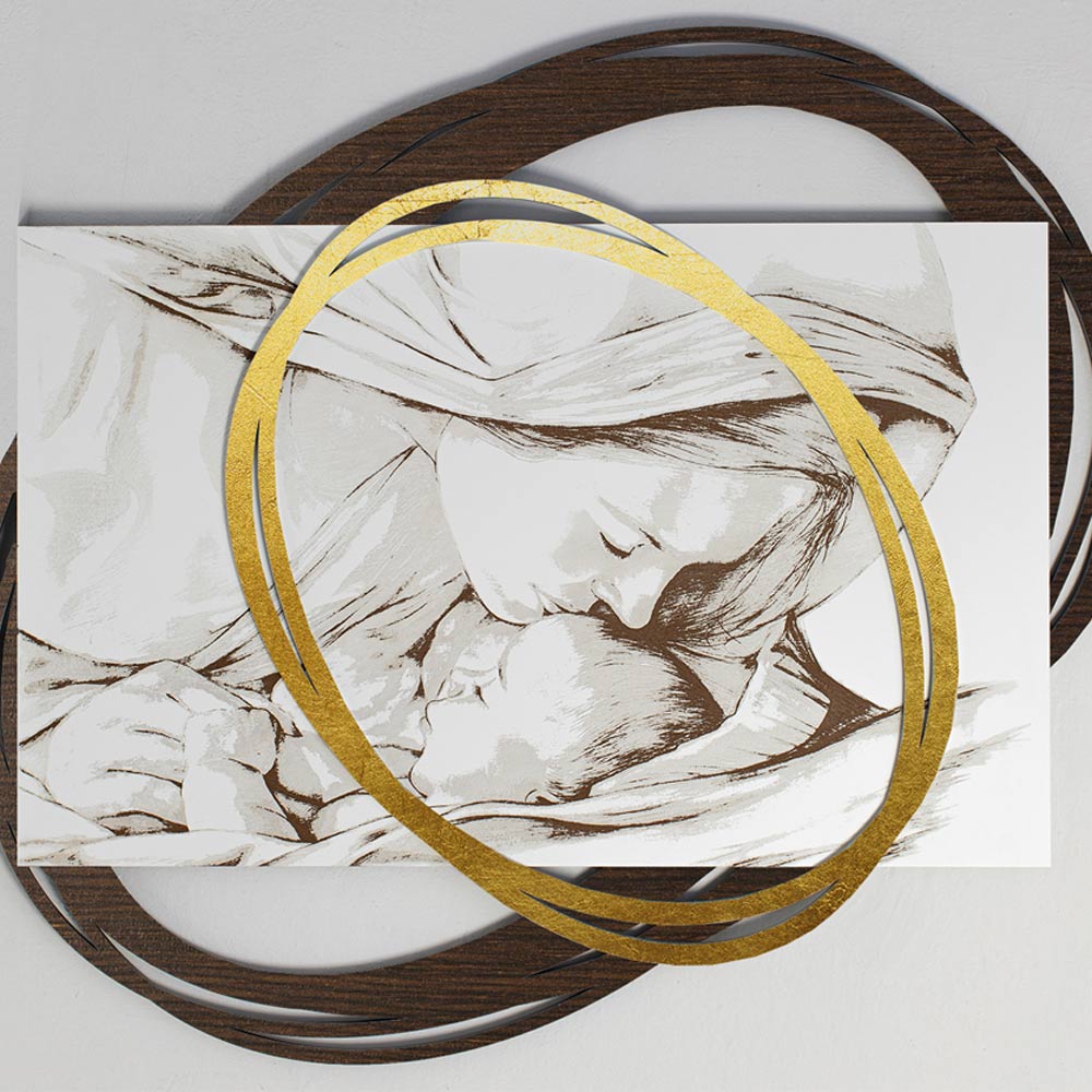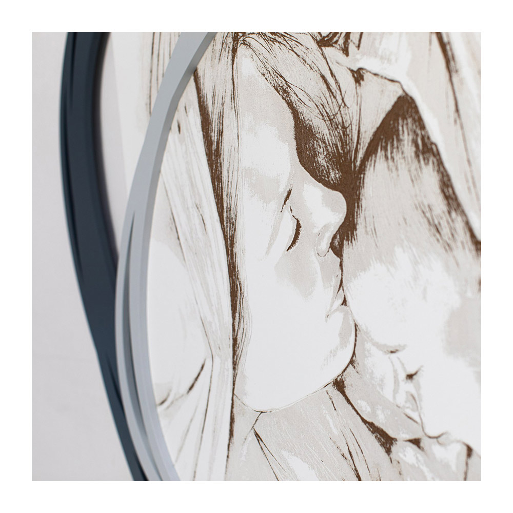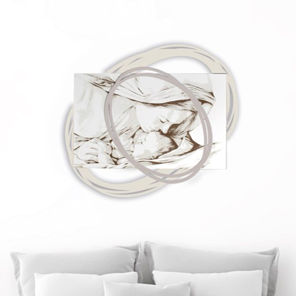 Esta pintura fue diseñada para maximizar la ternura del beso que la Virgen le da a Jesús. Líneas simples pero precisas nacen de las manos de maestros artesanos italianos que han creado este diseño con mimo y dedicación, haciéndolo único e inimitable. Este cabecero combina la calidad de los materiales y técnicas con la posibilidad de elegir los acabados que mejor se adapten a cada necesidad de diseño.