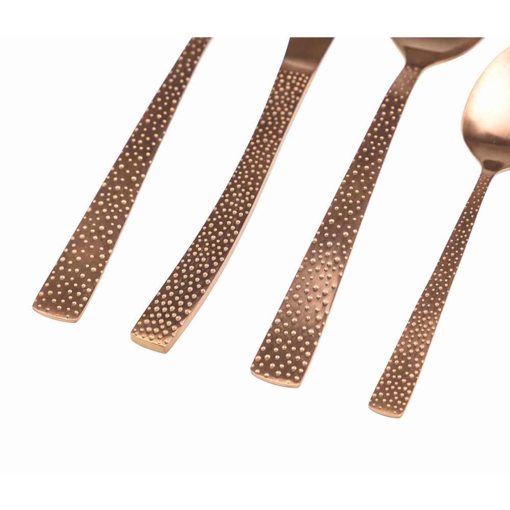 Juego de cubiertos de diseño en acero cobre con efecto carey 24 piezas.