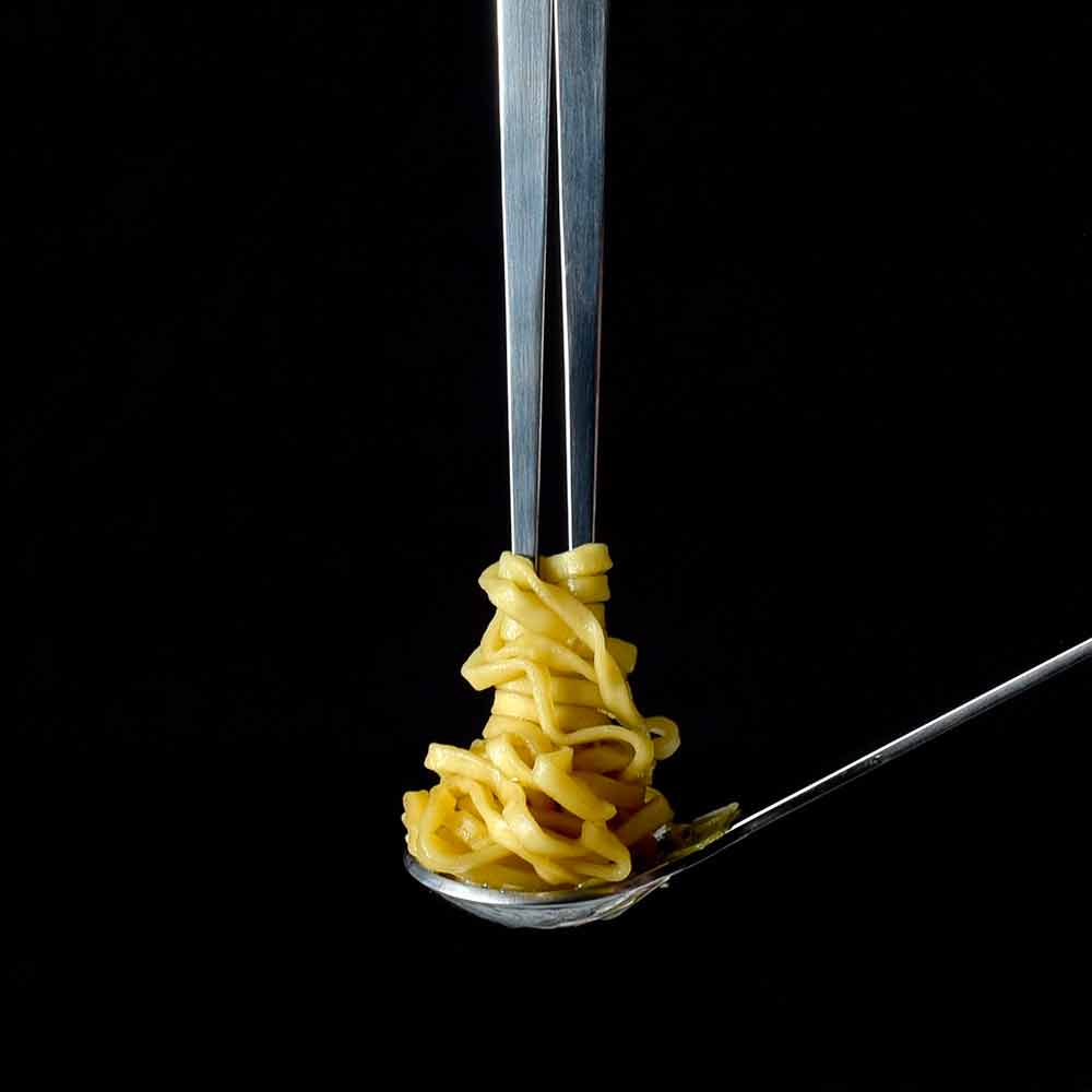 La verdadera peculiaridad del trío de cubiertos está representada por el accesorio varita-tenedor múltiple que se obtiene simplemente insertando 3 gomas elásticas en la parte superior para que, de utensilios aptos para comer comida oriental como el sushi, consigas una herramienta ideal para más Platos occidentales como pasta.