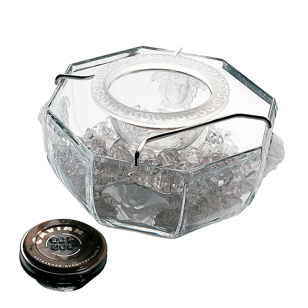 Déjate seducir por la sofisticación del cuenco para caviar Medusa Lumière de Versace , una obra maestra de cristal puro que combina la elegancia atemporal con el lujo moderno . Esta exclusiva pieza, adornada con el icónico rostro de Medusa en relieve, está diseñada para realzar cada detalle de tu mesa, haciendo que cada ocasión sea única. La transparencia del cristal contrasta maravillosamente con los detalles decorativos, mientras que la estructura facetada añade un toque de suntuosidad y brillo.