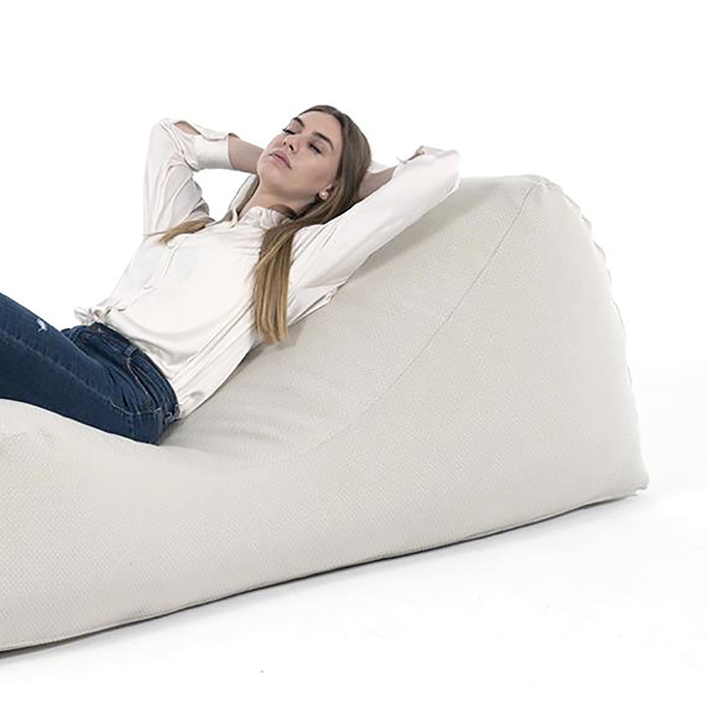 Esta tumbona de lino blanco es la definición perfecta de relajación absoluta . Su forma ergonómica se adapta naturalmente al cuerpo, ofreciendo el soporte ideal para momentos de puro bienestar al aire libre , desde la lectura hasta la siesta.