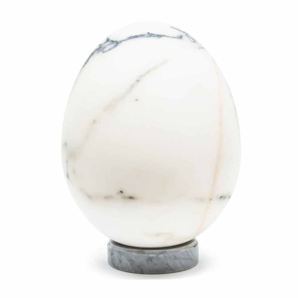 Huevo en mármol Paonazzo de tamaño mediano, objeto de diseño de lujo y calidad made in Italy.
