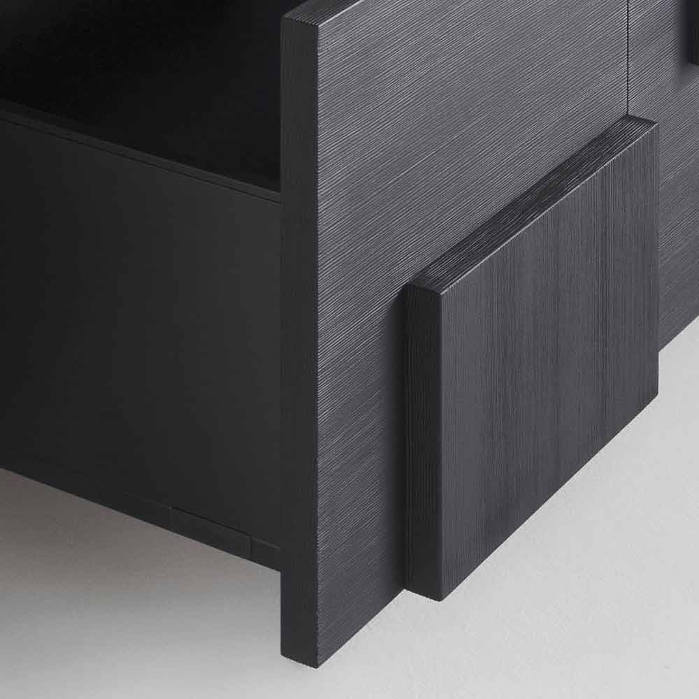 Aparador termotractada cepillado alerce con 2 laterales y 2 puertas centrales de cajón. Estantes en MDF lacado.