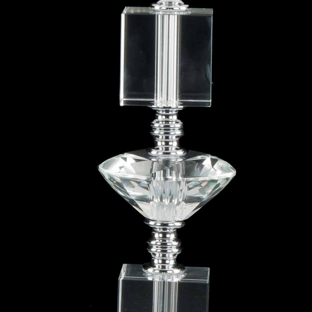 Lámpara fabricada en Italia en cristal transparente hecho a mano con adornos de cristal. Acabados cromados.