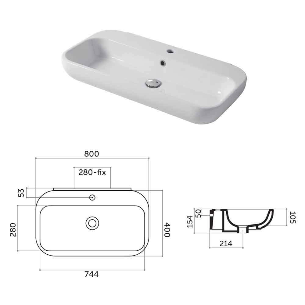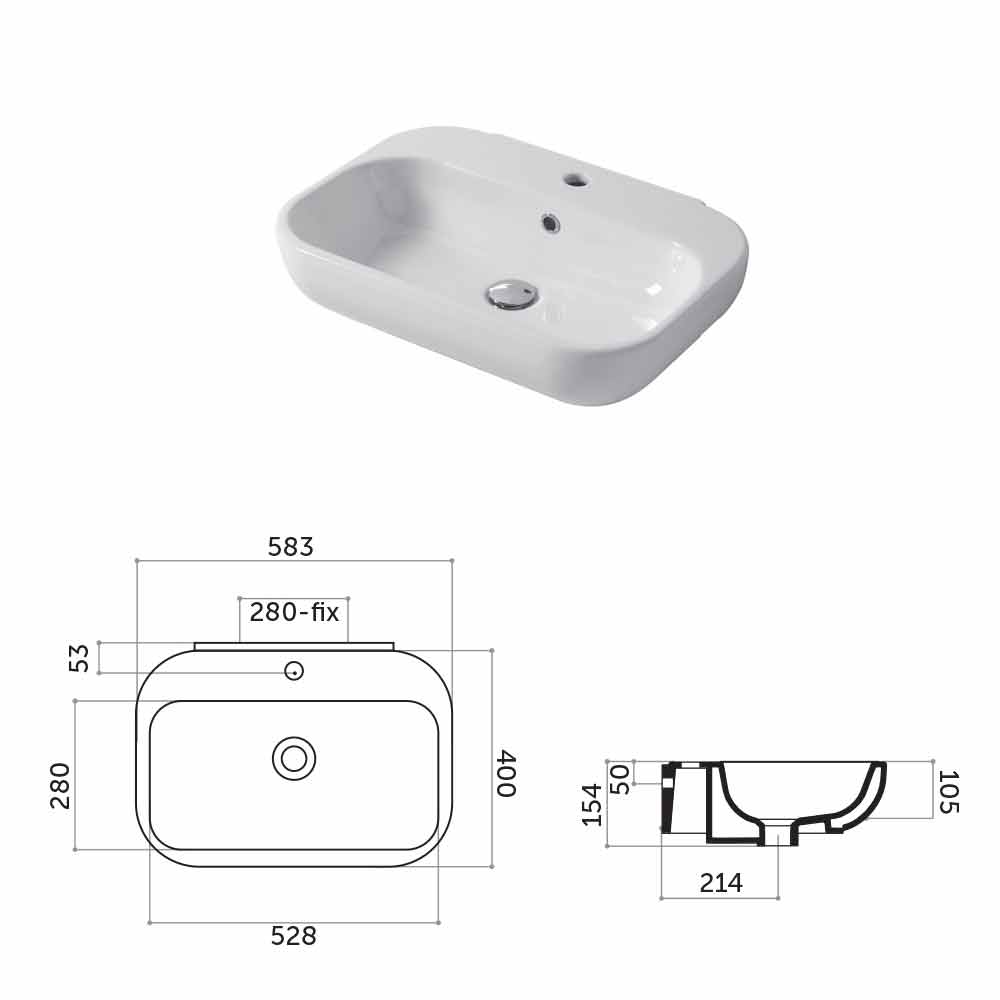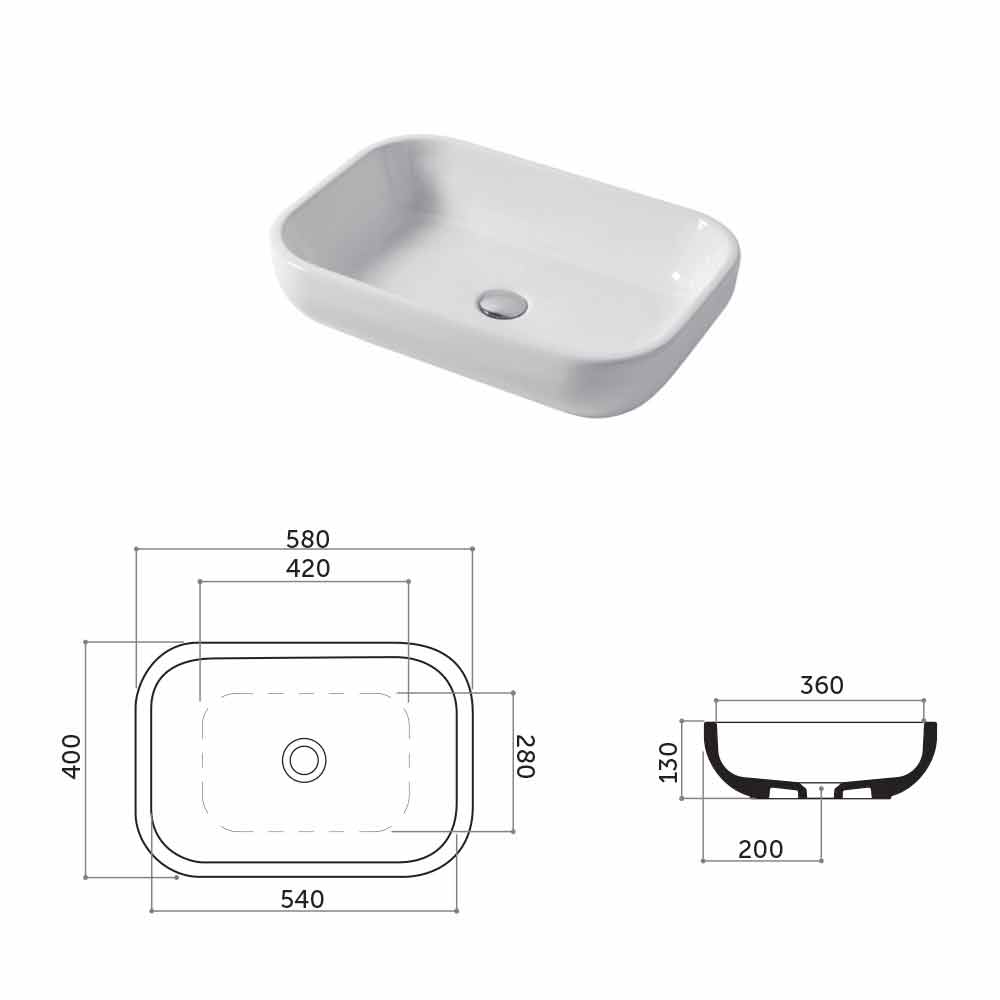 L 58 x P 40 x H 13 cm - versión sobre encimera