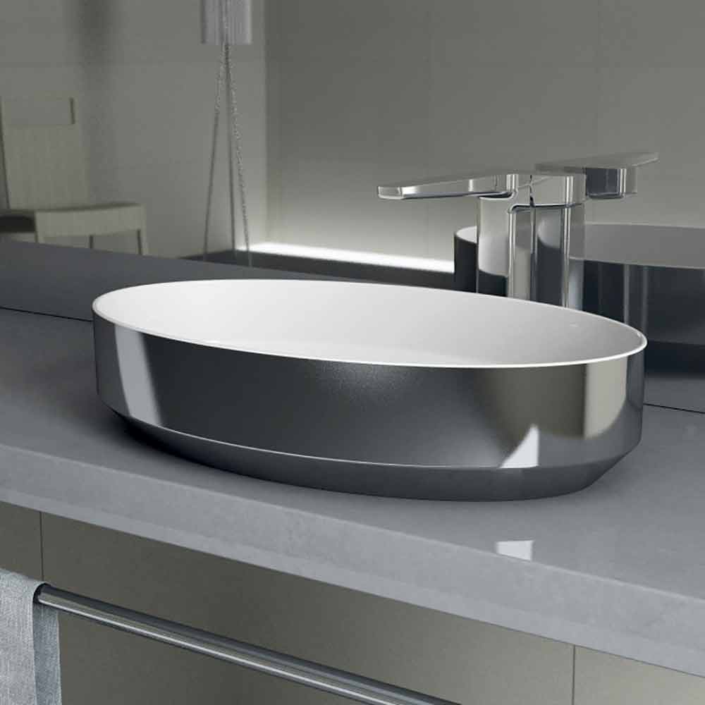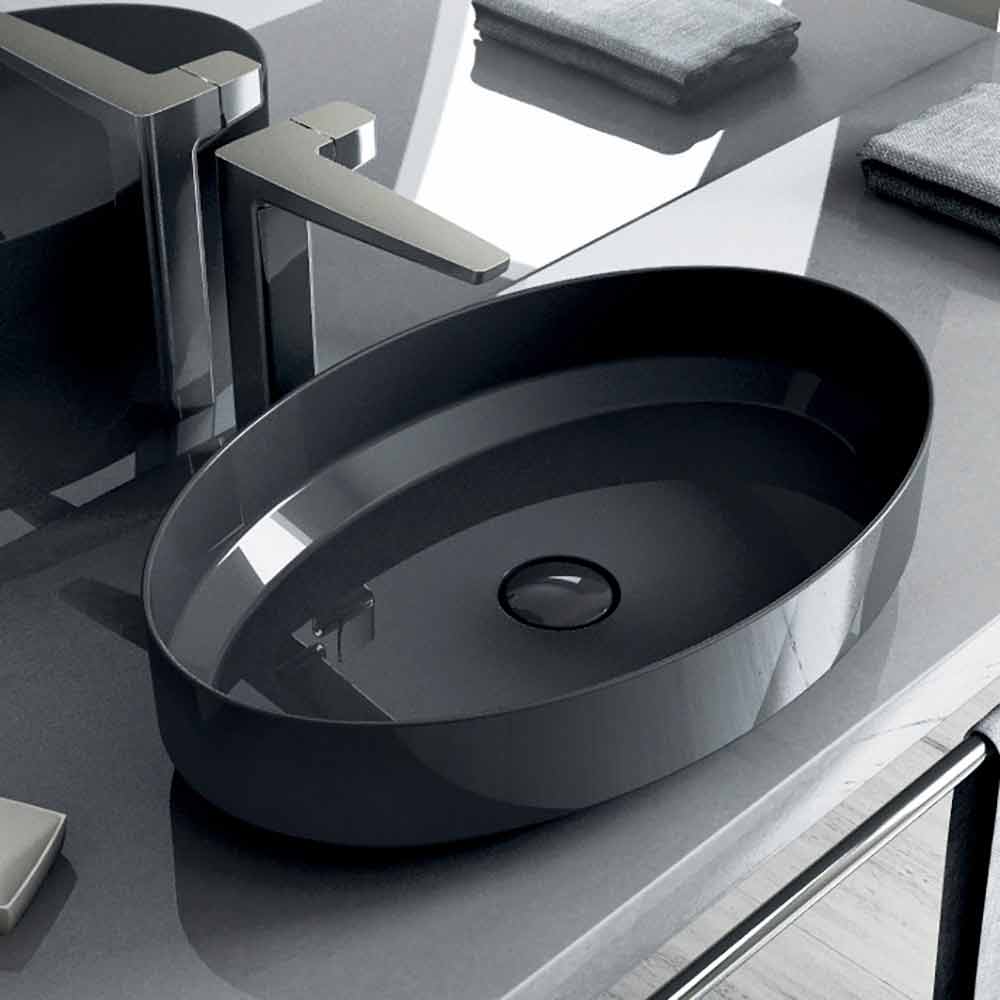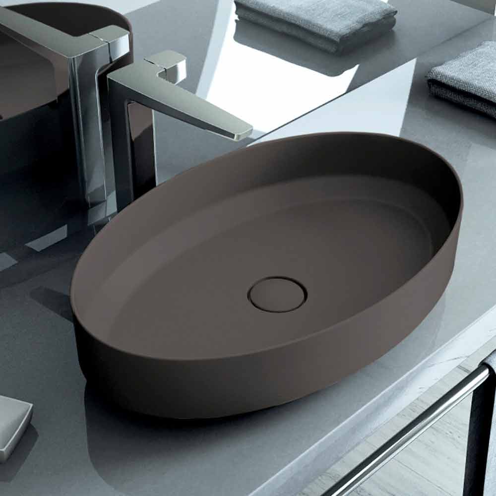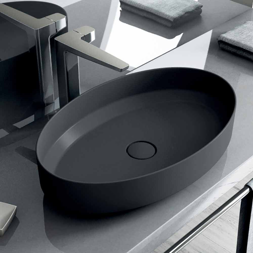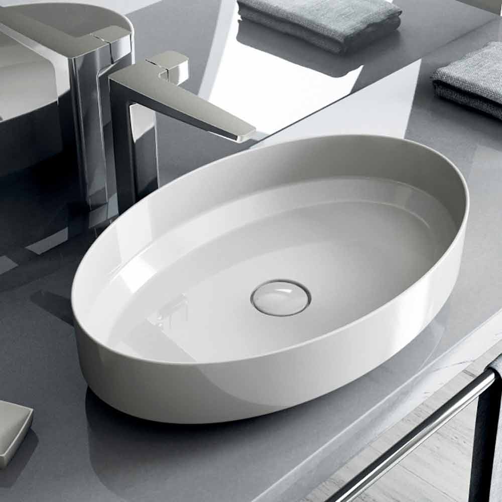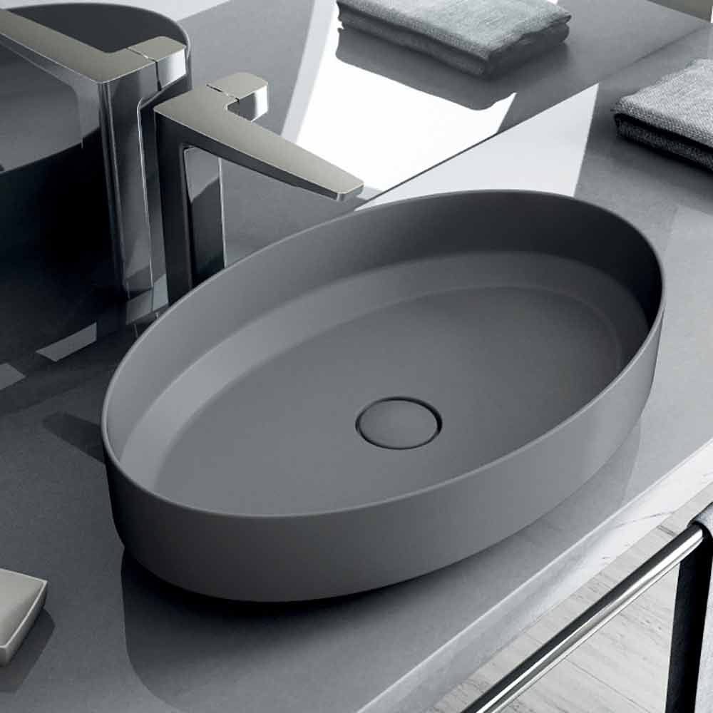 Diseño de fregadero de encimera oval en cerámica hecha en Italia, Yoel