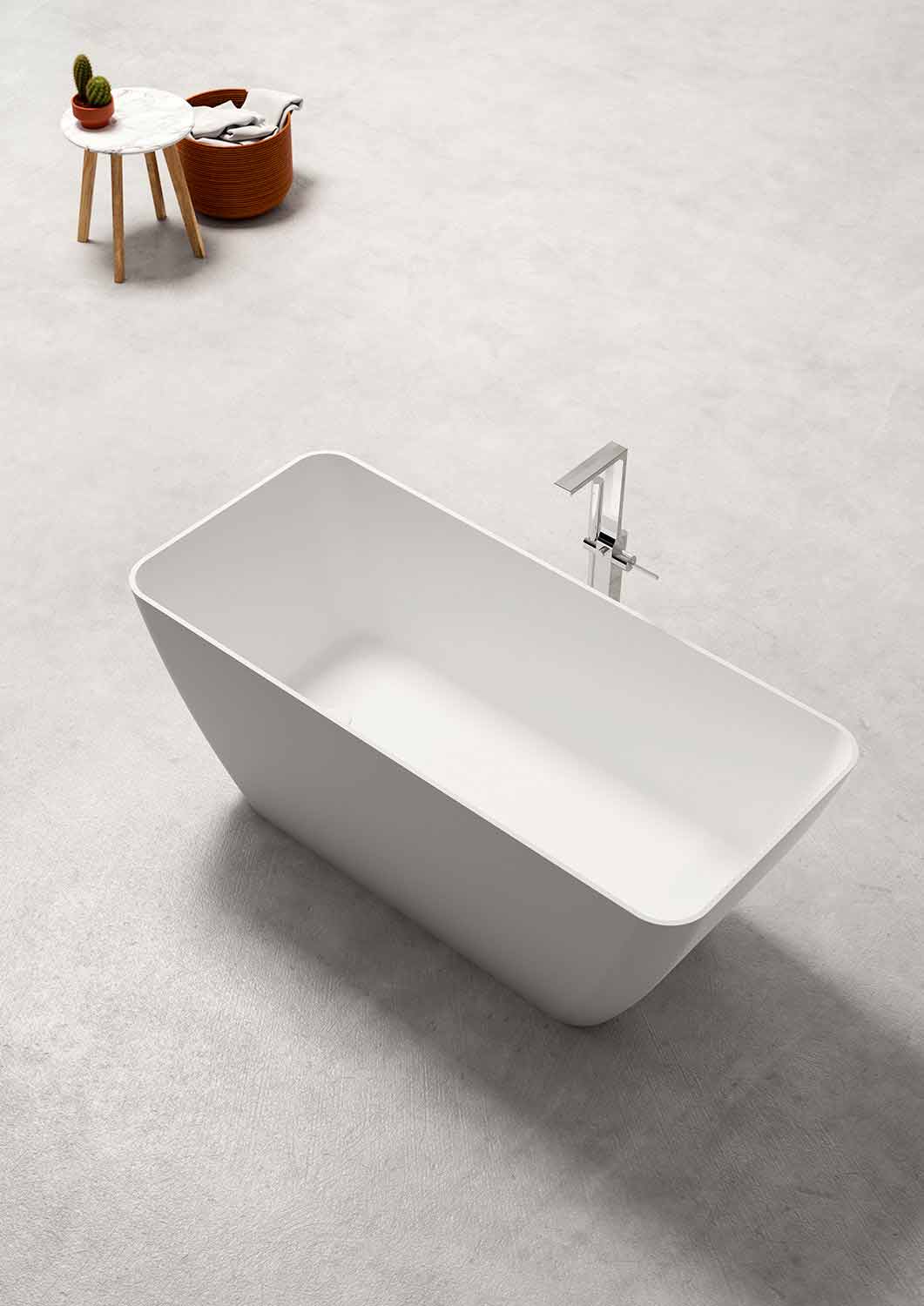 El material utilizado es la superficie sólida que combina un alto rendimiento y una estética con un efecto natural. Alta resistencia a los rayos UV. Versátil, maleable, inalterable en el tiempo . Esas características hacen que este material sea perfecto para el baño, resistente y elegante al mismo tiempo. Interpretado en productos tanto en acabado brillante como mate , con su estética atractiva que puede satisfacer incluso a los clientes más exigentes.