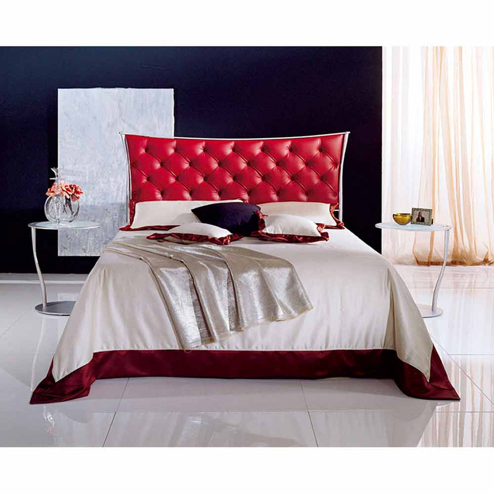 La cama de hierro forjado en la variante CABECERO DOBLE CON CONTENEDOR incluye un somier de láminas que puede alojar un colchón de 160 X 190 cm. El somier que suministramos tiene un sistema especial de retención del colchón que le permite alojar también un colchón de 190 cm de largo. En caso de que haya necesidades estéticas particulares, este modelo, gracias a nuestra productividad artesanal, se puede modificar en altura. El contenedor está fabricado íntegramente en metal y se puede pintar en cualquier color. Tener el contenedor de metal garantiza innumerables ventajas a nuestra cama entre las que se encuentran la solidez, la facilidad de limpieza y una mayor capacidad. El contenedor se puede combinar en cualquier caso con una cenefa textil.