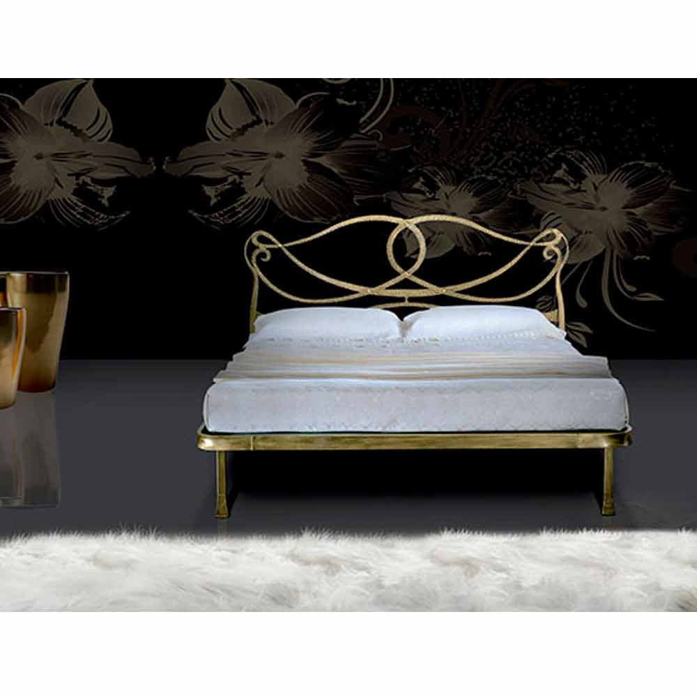 Cama doble de hierro forjado Orchidea, hecha a mano en Italia .