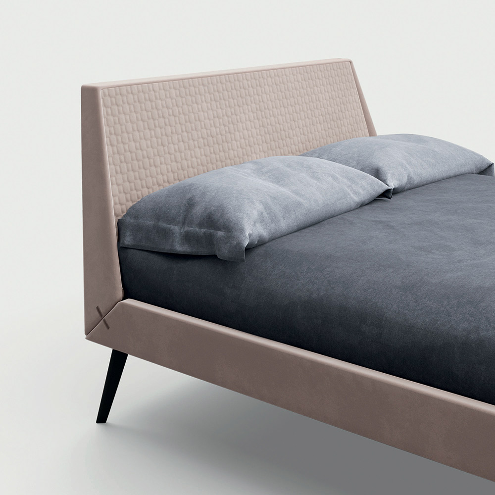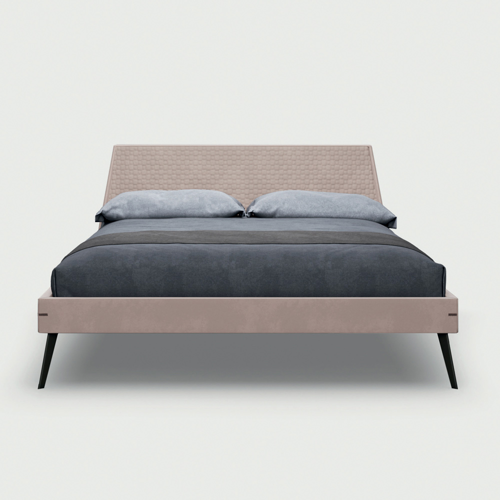 Dormitorio completo con 4 elementos íntegramente fabricado en Italia . La composición incluye una cama de matrimonio con estructura de madera tapizada en tejido con patas de metal bruñido , 2 mesitas de noche de 2 cajones cada una y una cómoda de 4 cajones en acabado terracota con tablero superior en madera lacada terra mate . Una línea de productos caracterizada por formas y características esenciales y medidas, ideal para quienes buscan una comodidad natural de forma y función . La cama está subrayada por dos niveles diferentes de acolchado que se unen en el cabecero que a su vez se une a la base decorada con maravillosas inserciones cosidas que embellecen sus formas. Los elementos que completan la composición enriquecen la estética del dormitorio con un toque de minimalismo refinado gracias a la combinación creativa de acabados que casa las líneas simples para un resultado elegante y particularmente moderno.