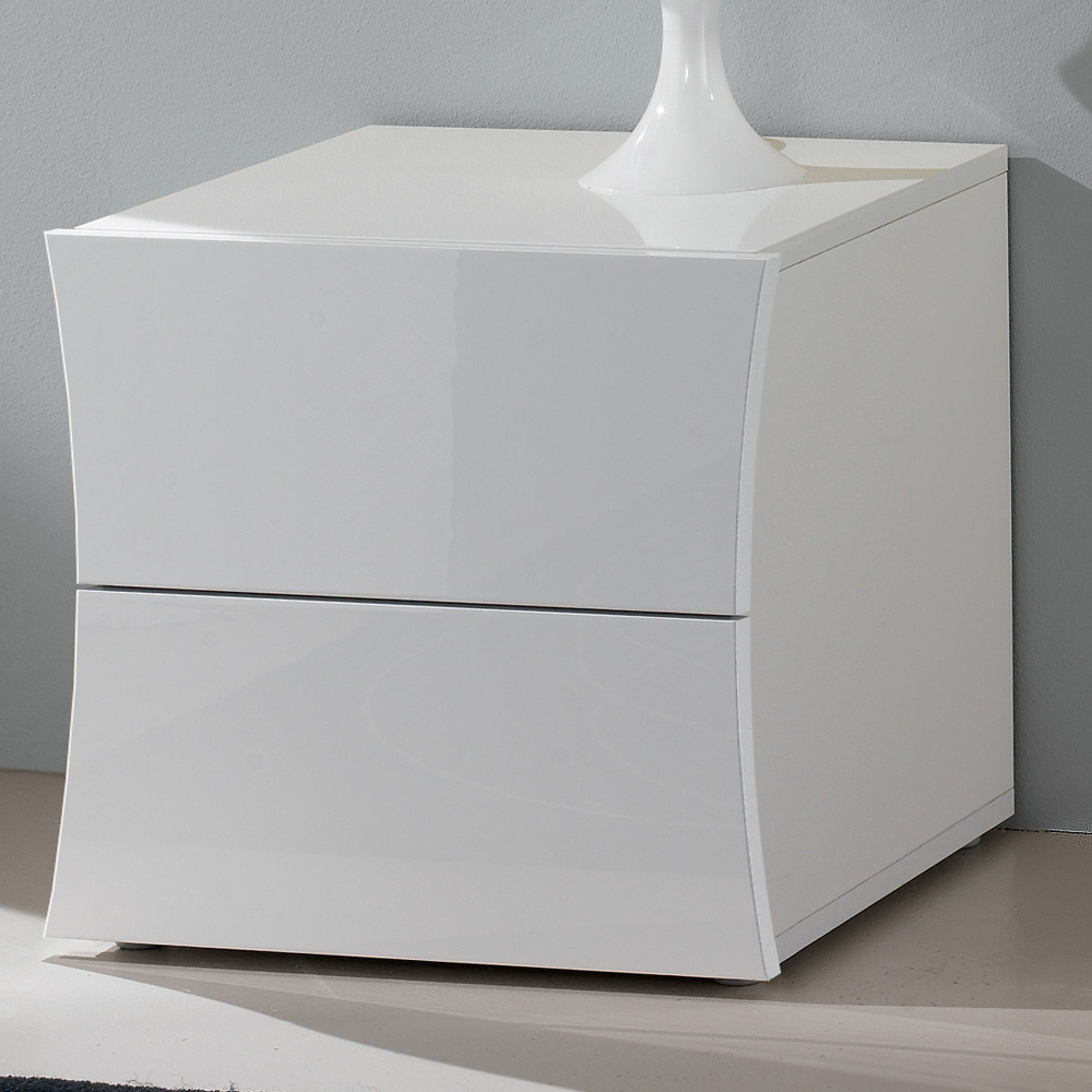 Mesita de noche con 2 cajones para el dormitorio de diseño blanco, made in Italy.