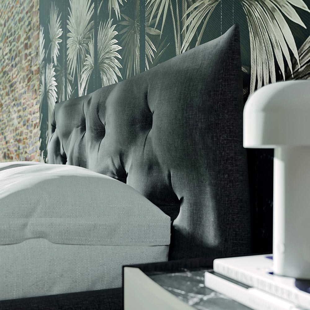 presencia importante e imponente y por el particular procesamiento que mueve la suavidad del cabecero, conquistando la zona de descanso con su