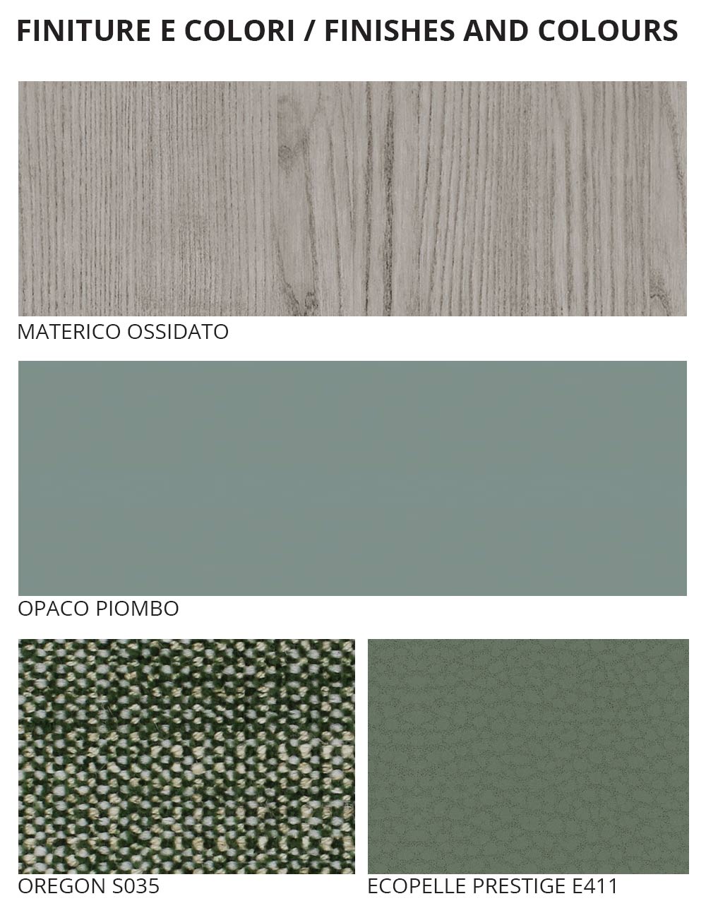 madera acabada en melamina. material lacado mate oxidado y plomo. Un mobiliario completo caracterizado por un
