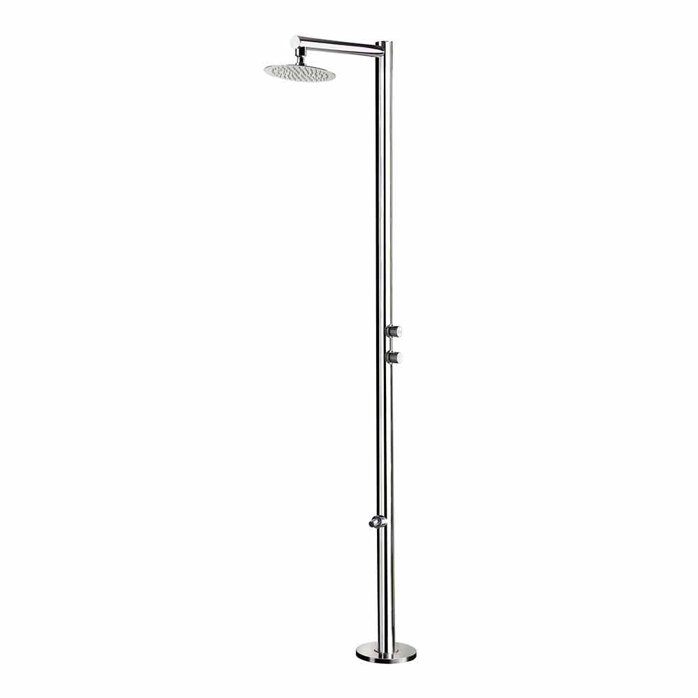 Ducha de jardín de agua caliente/fría en acero inoxidable pulido con lavapiés. Fabricada en Italia.