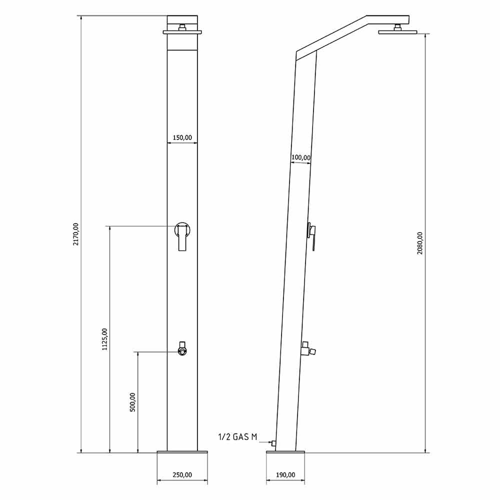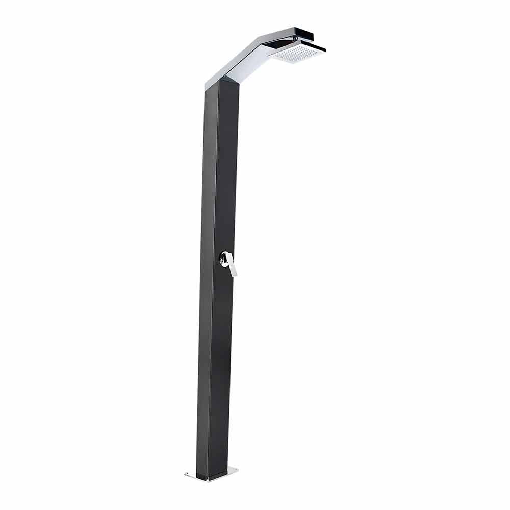 Ducha solar para jardín en acero inoxidable pintado en negro. Fabricada en Italia.