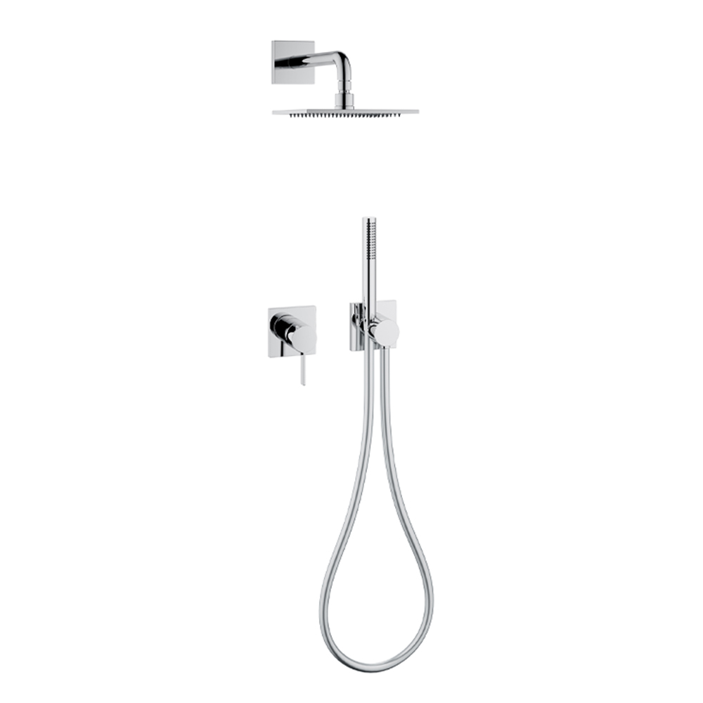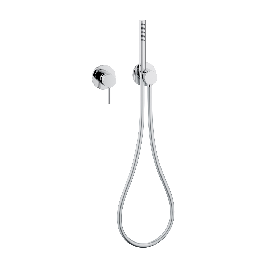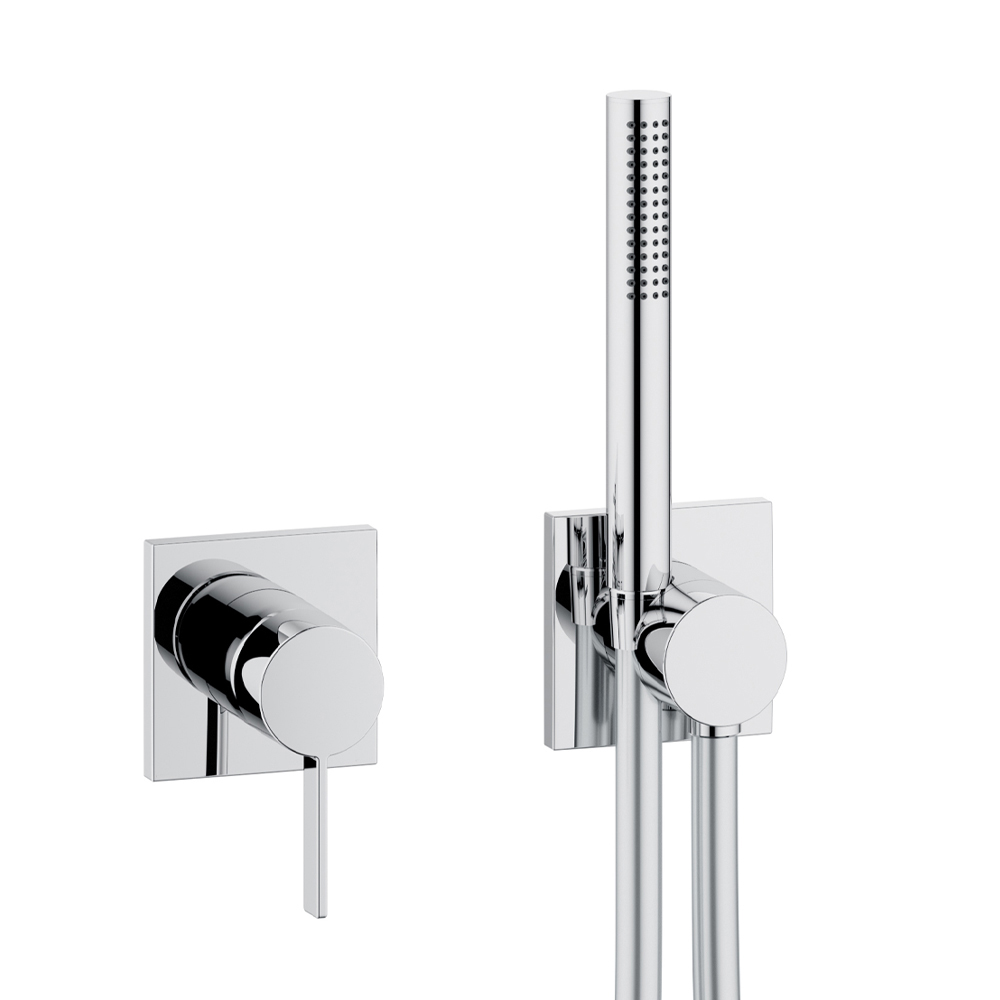 - Desviador oculto bidireccional con conexión de manguera flexible y soporte de ducha de pared