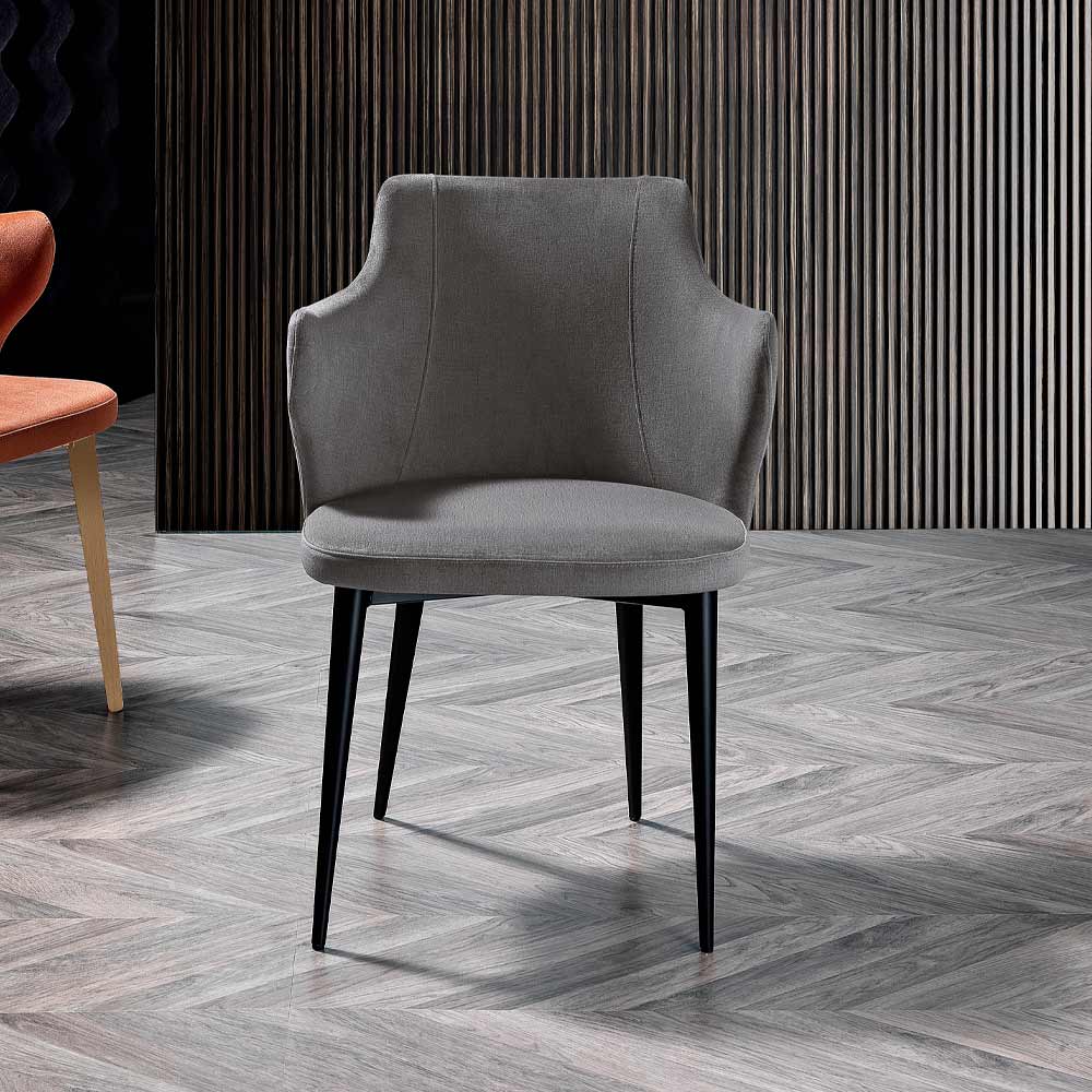 Transforma tu comedor en un espacio más cómodo y elegante con el moderno sillón con asiento tapizado en tela cristal de fácil limpieza y disponible en diferentes variantes de color: