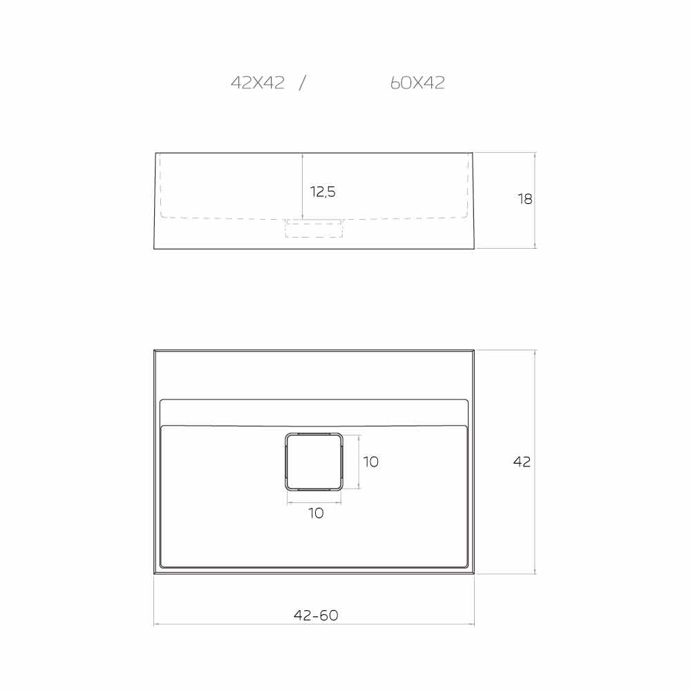 - L 60 x P 42 x H 18 cm.