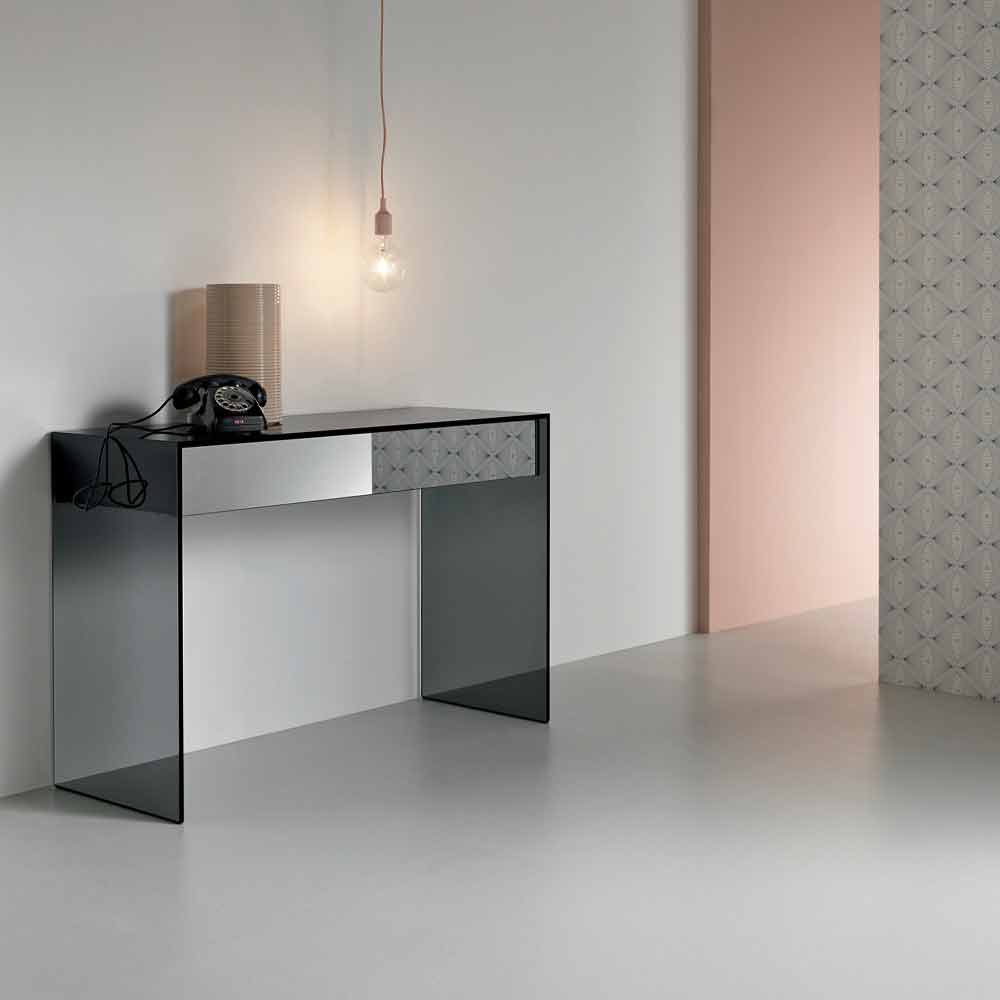 Consolle de Escritorio en Vidrio Ahumado con Cajones Hecho en Italia - Mantra
