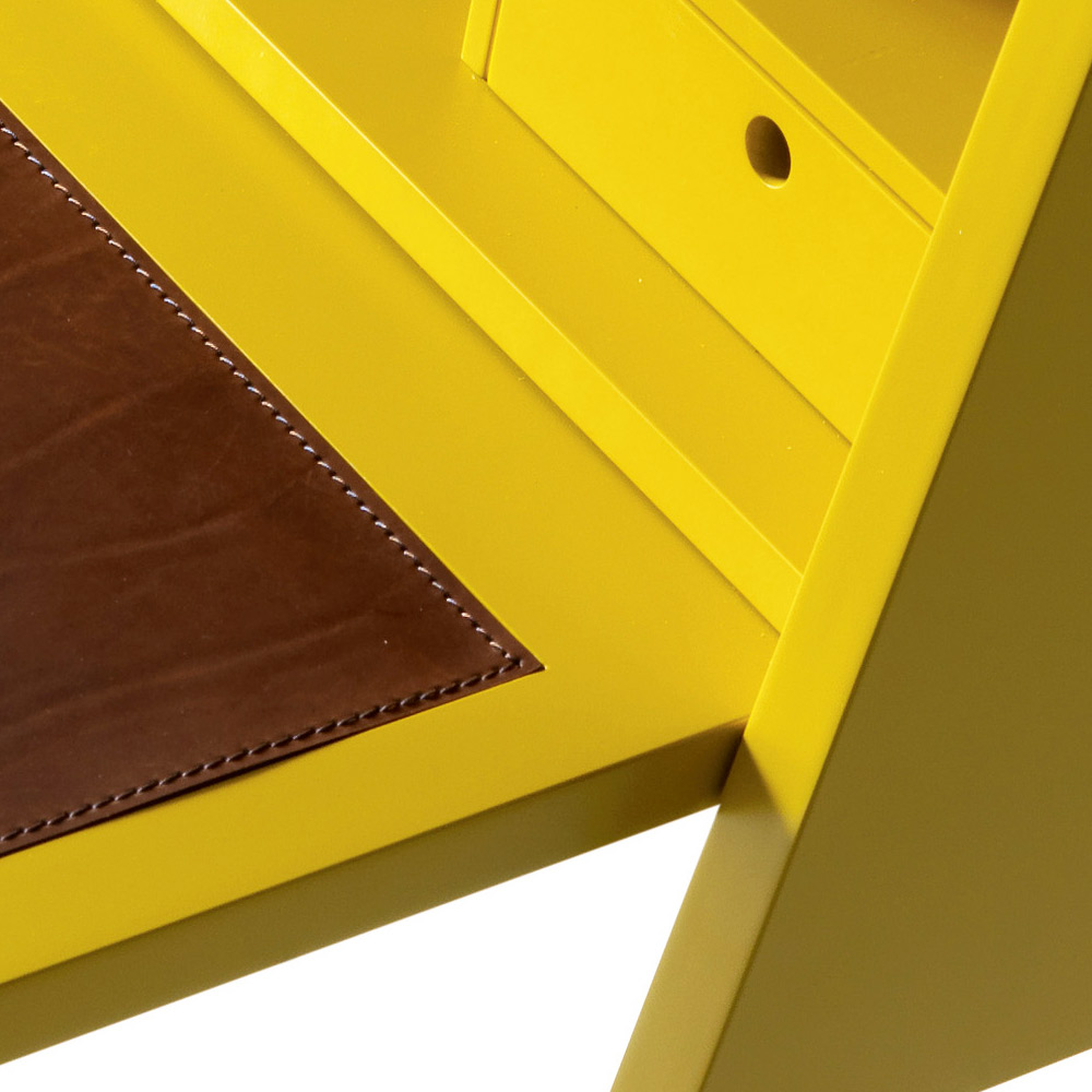 Escritorio de diseño en madera multicapa fabricado en Italia Grilli Hemingway Escritorio de diseño moderno con estructura multicapa en madera lacada en colores RAL. Totalmente dividido en compartimentos para usar en la PC de la oficina, un estante inclinable cubierto de cuero natural y con cerradura de llave. En la parte posterior hay una ventana de vidrio de humo para darle visibilidad al abridor que lo usa. La base es de madera maciza de nogal.