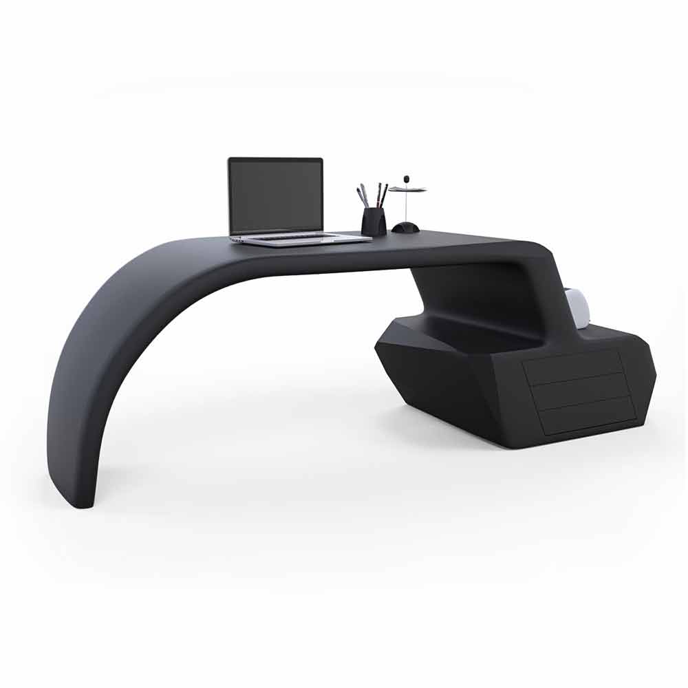 El escritorio Gush nace del encuentro entre lenguajes formales aparentemente distantes. Así como un chorro de agua de manantial brota de la roca, nuestro escritorio reúne códigos estilísticos divergentes: sólido versus líquido para realzar plenamente las características del Solid Surface, el material del que está hecho. Escritorio disponible en dos variantes de color: Blanco (RAL9003) o Negro (RAL9005).
