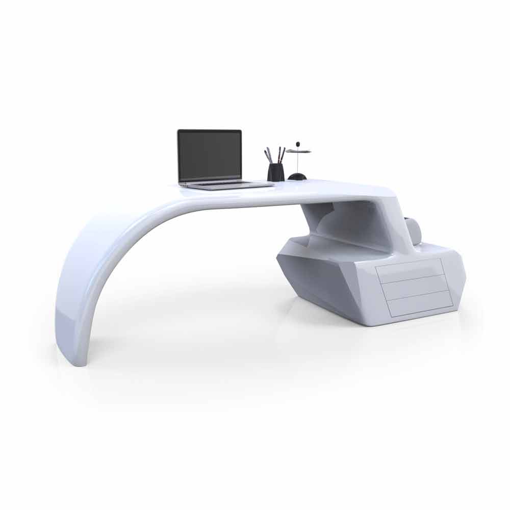 Escritorio de oficina Gush de diseño moderno fabricado en Italia. Material : Superficie sólida; Acabado : Brillante/mate disponible en diferentes variaciones de color Diseñador : Alessandro Gorla Medidas : L.237 x P. 82 x A. 74 cm Peso : 40 kilos