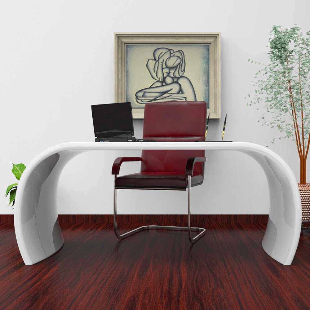 Mesa de gerente. Material: Superficie sólida; Una forma sinuosa, casi como una ola, se convierte en parte de la vida laboral cotidiana. Este escritorio, fabricado en Solid Surface, gracias a su forma curva rompe la monotomía de la oficina brindándonos un ambiente moderno y amigable. Sus colores vivos hacen que combine bien con cualquier tipo de ambiente, dotándolo de gusto. Acabado exterior lacado mate, acabado interior lacado brillante. Disponible en diferentes variaciones de color.