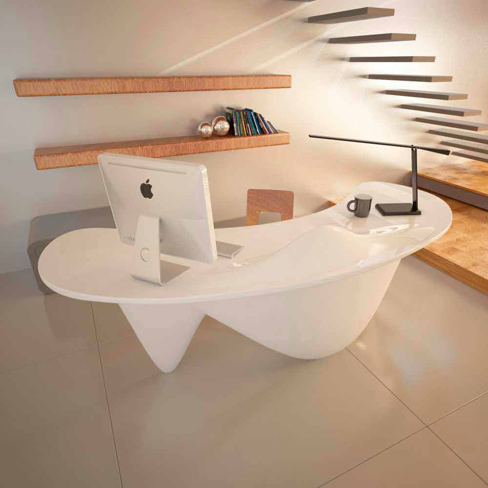 La idea se convierte en materia. Material: Superficie sólida; Diseño de Rosaria Colonna y materiales innovadores para un objeto que pretende convertirse en el centro funcional y estético de una importante oficina. Está fabricado en Solid Surface, una resina líder en el sector del mueble italiano. Acabado lacado brillante Disponible en diferentes variaciones de color.