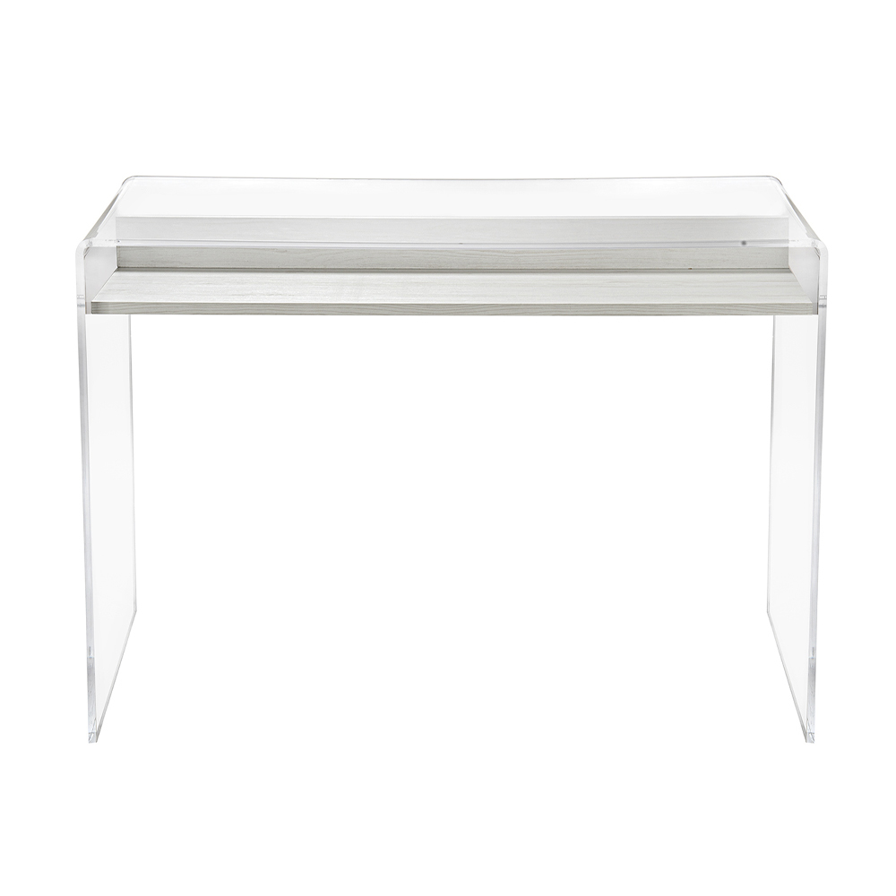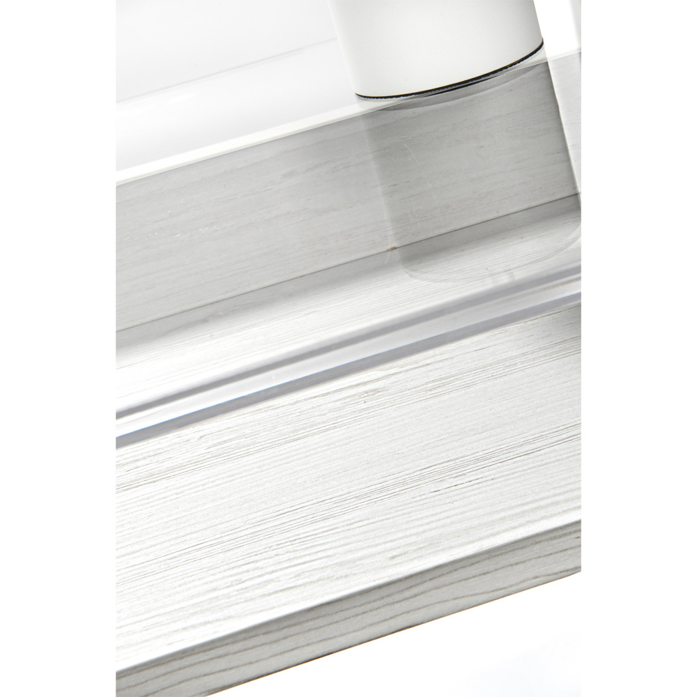 - Plexiglás transparente con estante de esencia de madera blanca.