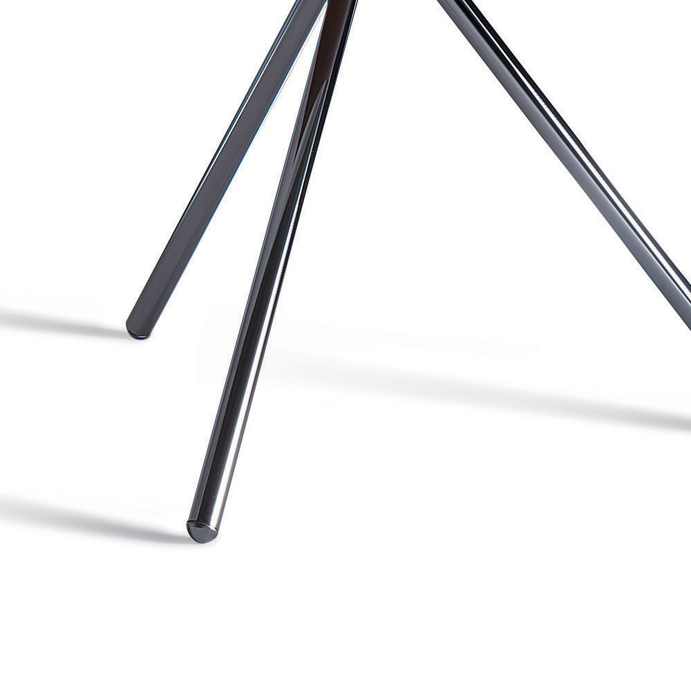 James también se enriquece con una caja de almacenamiento realizada en aglomerado revestido de melamina y canteada en ABS, montada sobre un trípode de hierro cromado, disponible en acabado blanco.