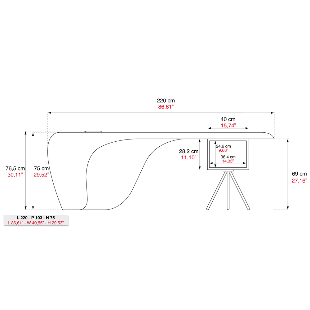 Este escritorio se compone de una carcasa autoportante moldeada en poliuretano de alta densidad, disponible en tres variantes diferentes: Brillo, Mate Gofrado o en la versión metalizada. Una vez que hayas elegido el acabado del escritorio, también podrás elegir la variante de color que mejor se adapte a ti.