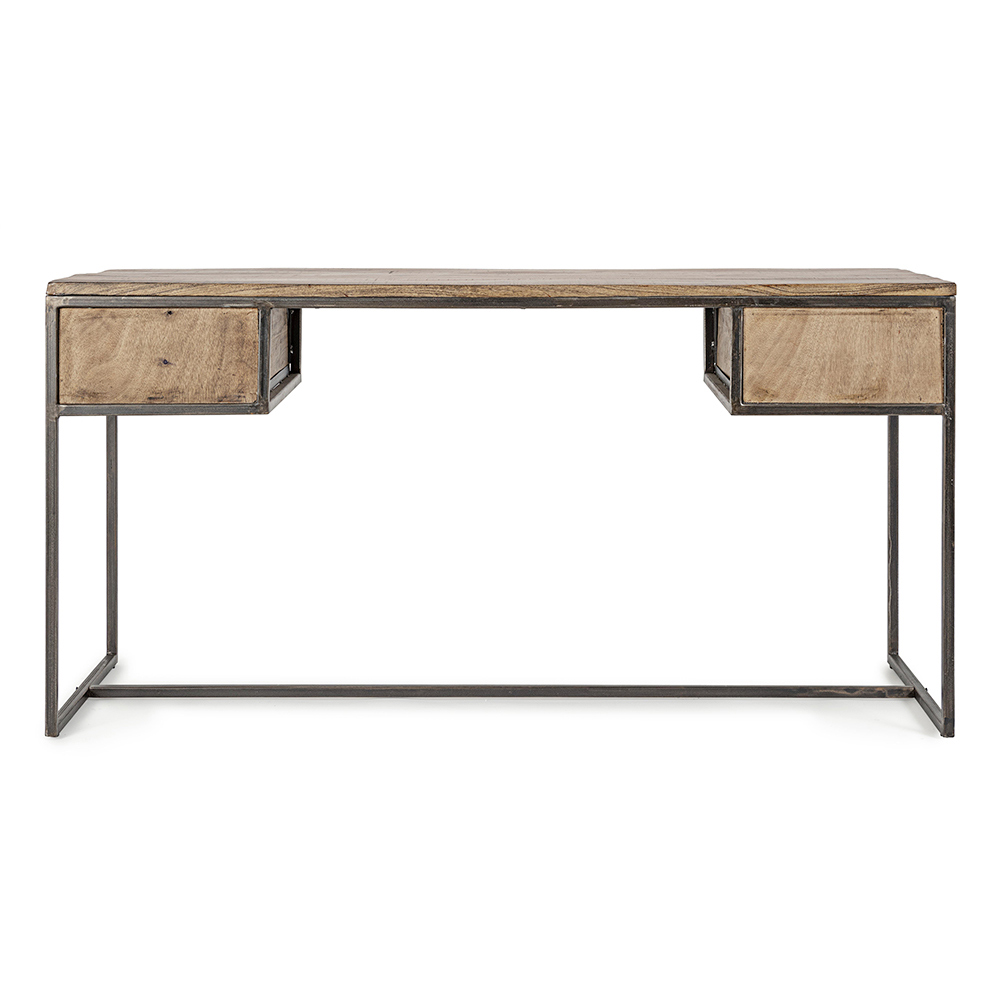 Escritorio en acero y madera de acacia con 2 cajones estilo industrial.