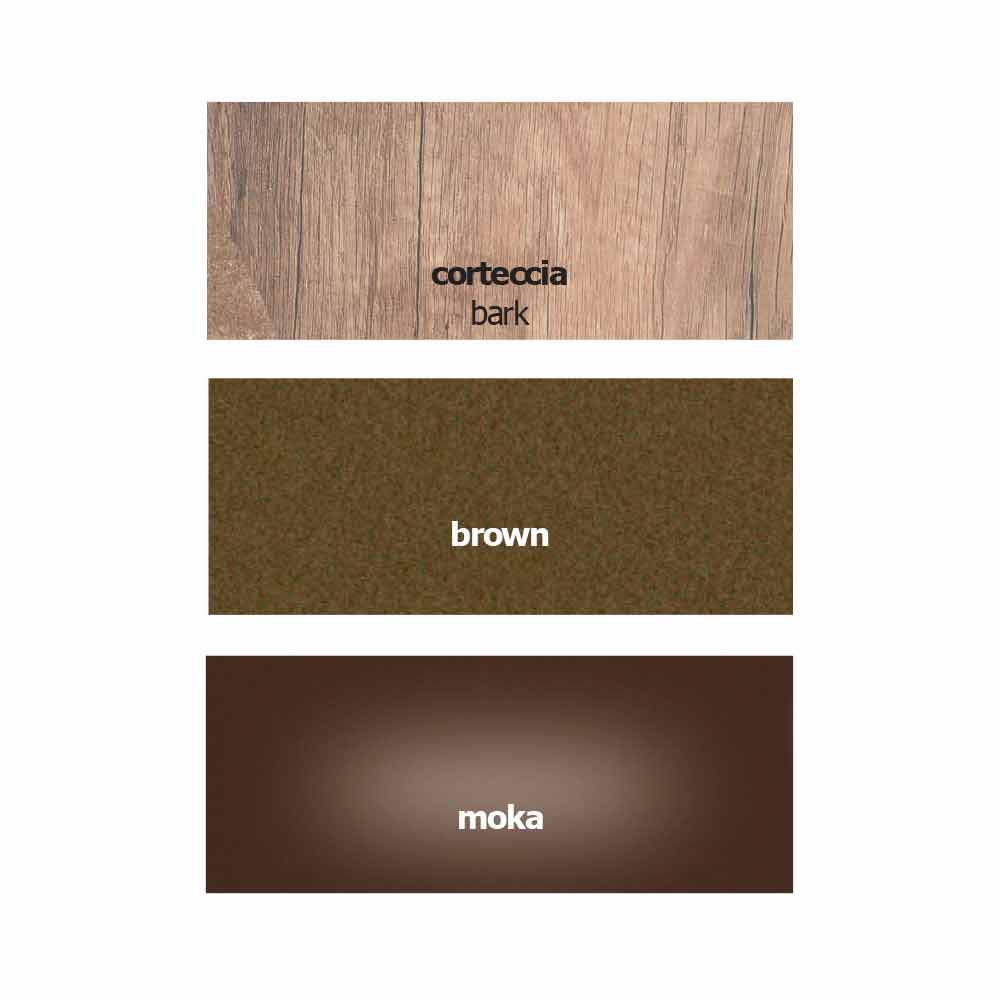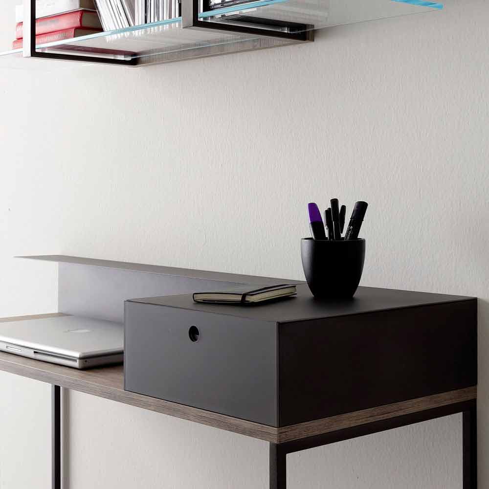 Escritorio moderno y elegante hecho en Italia con tapa de melamina en acabado corteza y estructura en metal pintado marrón . También se completa con un práctico cajón cubierto de cristal y colocado encima del tablero y un protector contra salpicaduras de metal a juego con la base. Estos dos elementos enriquecen el diseño del producto dándole un fuerte componente funcional. La estética refinada y la majestuosidad de la madera se combinan con el toque moderno del metal pintado y la elegancia atemporal del cristal para crear un mueble único y exclusivo, ideal para combinar la funcionalidad de un escritorio y el diseño de un elemento decorativo capaz de renovar el estilo del medio ambiente.