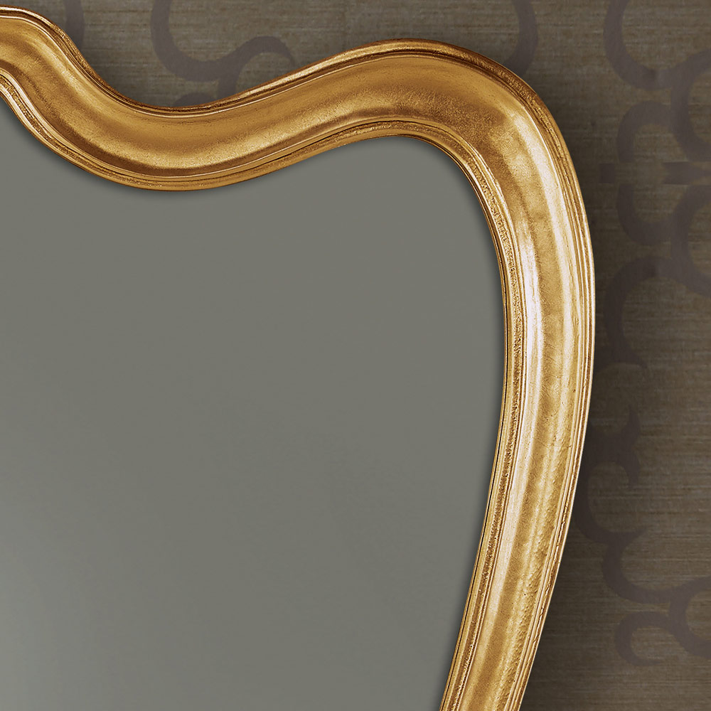 Espejo perfilado con marco de madera decorado con pan de oro . Gracias a su estilo clásico , este espejo es ideal para dar un toque elegante y lujoso a cualquier ambiente.