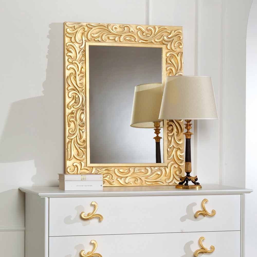 El espejo Pepa se caracteriza por una artesanía llevó a cabo utilizando materiales de alta calidad y el uso de la experiencia de artesanos italianos expertos. El bastidor está hecho de madera con aplicaciones de resina. pan de oro en escabeche acabado. Cristal de espejo, de 4 mm de espesor. Made in Italy.