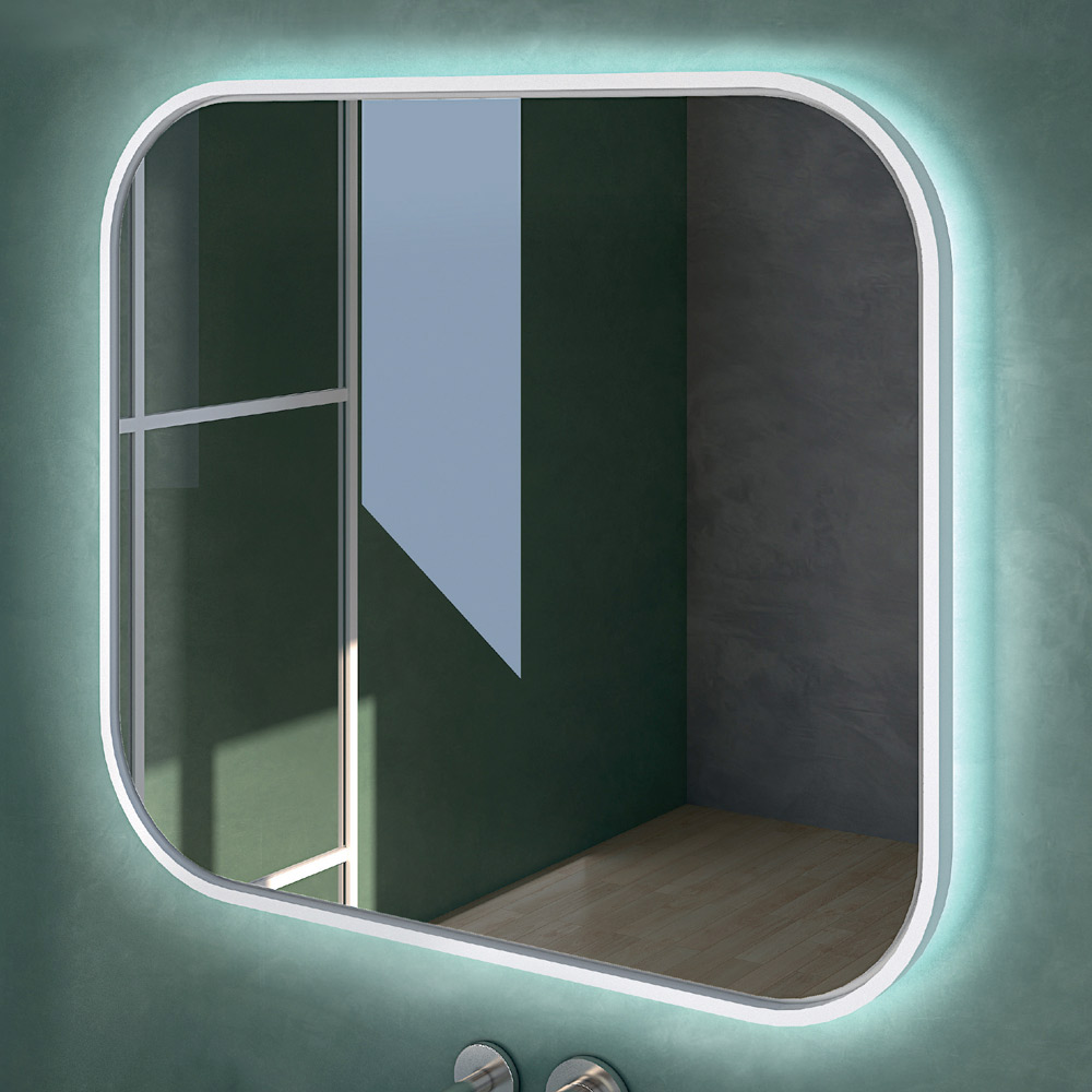 La forma redondeada con esquinas refinadas hace de este espejo un complemento versátil y atractivo para una variedad de espacios, desde el baño hasta el dormitorio, o como un acento distintivo en una sala de estar. La tecnología LED no sólo enfatiza el diseño único sino que también es energéticamente eficiente , lo que garantiza una iluminación duradera.