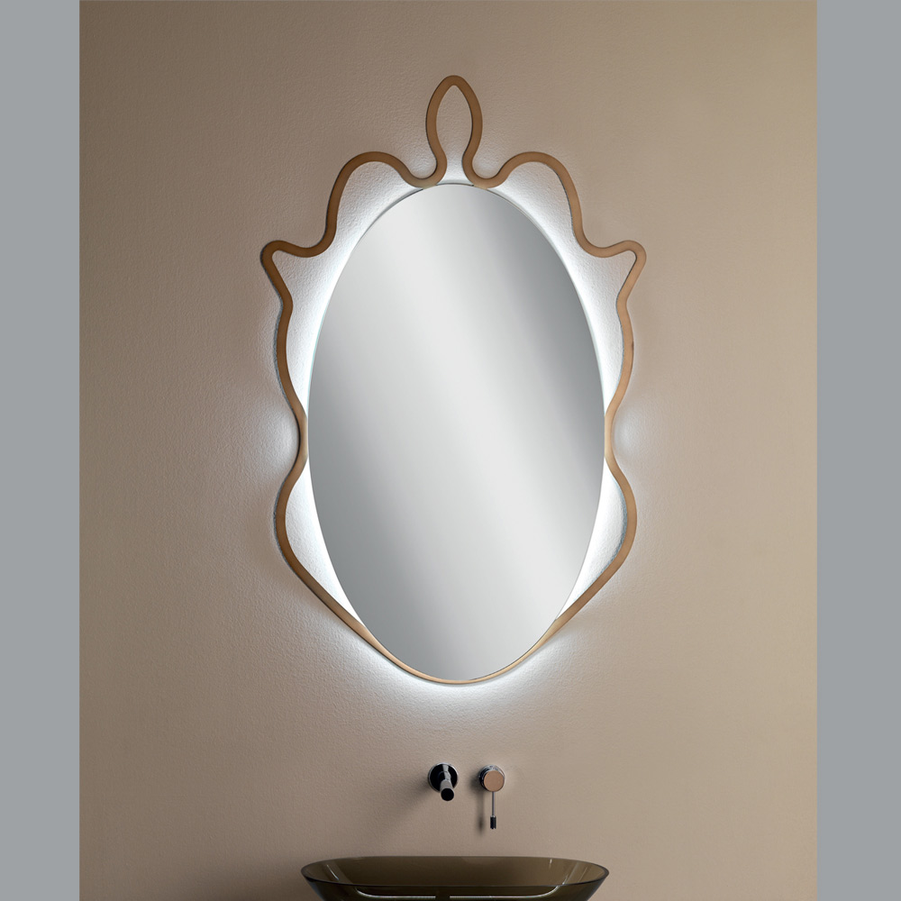 Este espejo artesanal italiano es la quintaesencia de la elegancia funcional , un homenaje a la maestría del diseño que realza cada espacio con su presencia. Su perfil sinuoso y orgánico, que evoca las suaves formas de la naturaleza, está enmarcado por unas líneas refinadas en metales preciosos , que lo transforman en una verdadera obra de arte.