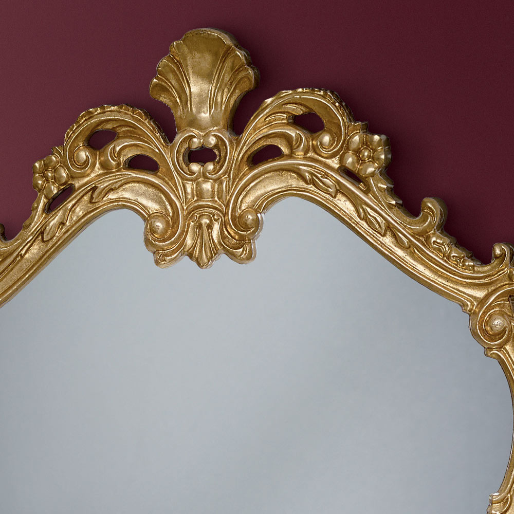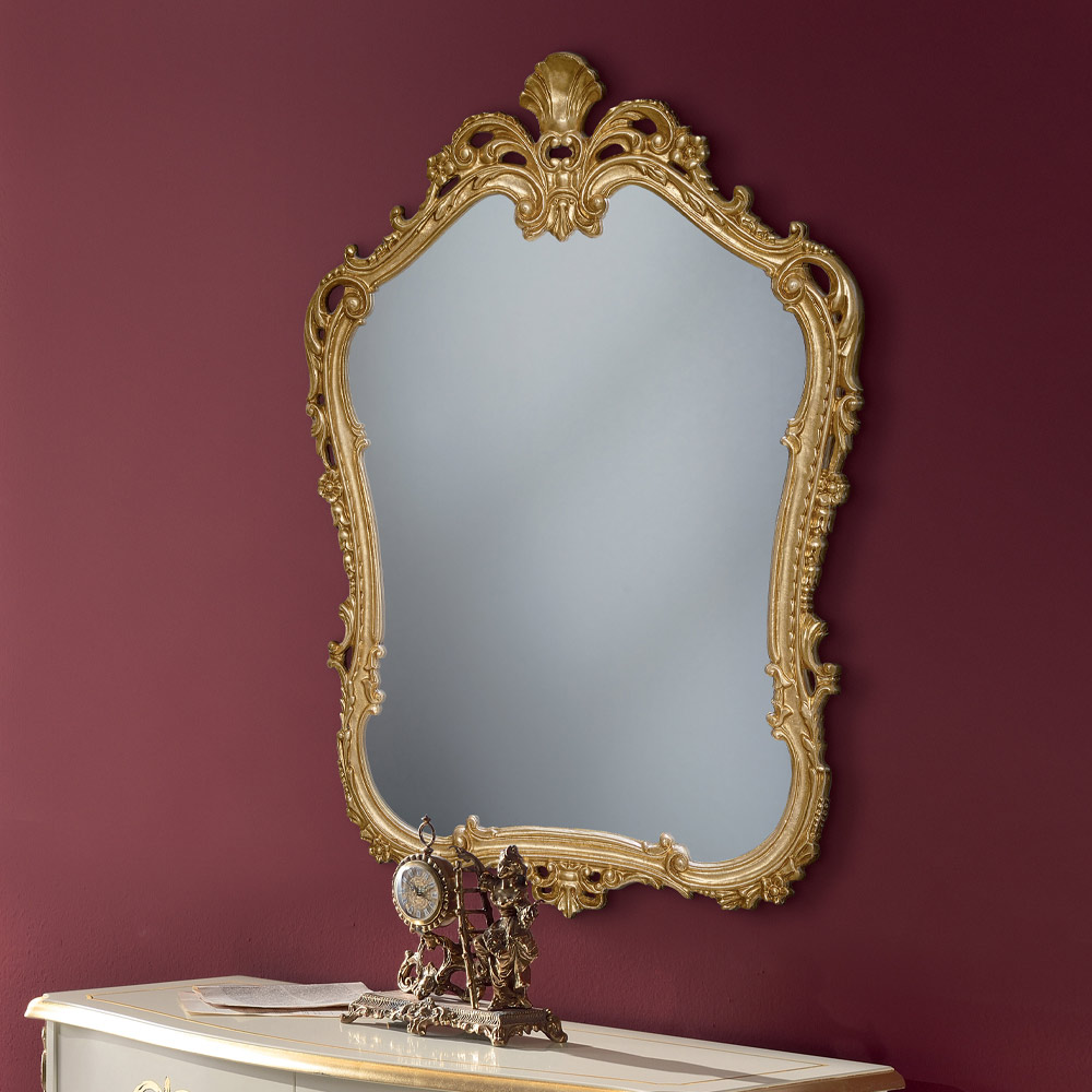 Espejo perfilado con marco de madera perforada y decorado con pan de oro De estilo clásico , este espejo es ideal para dar a cualquier estancia un toque elegante y lujoso .