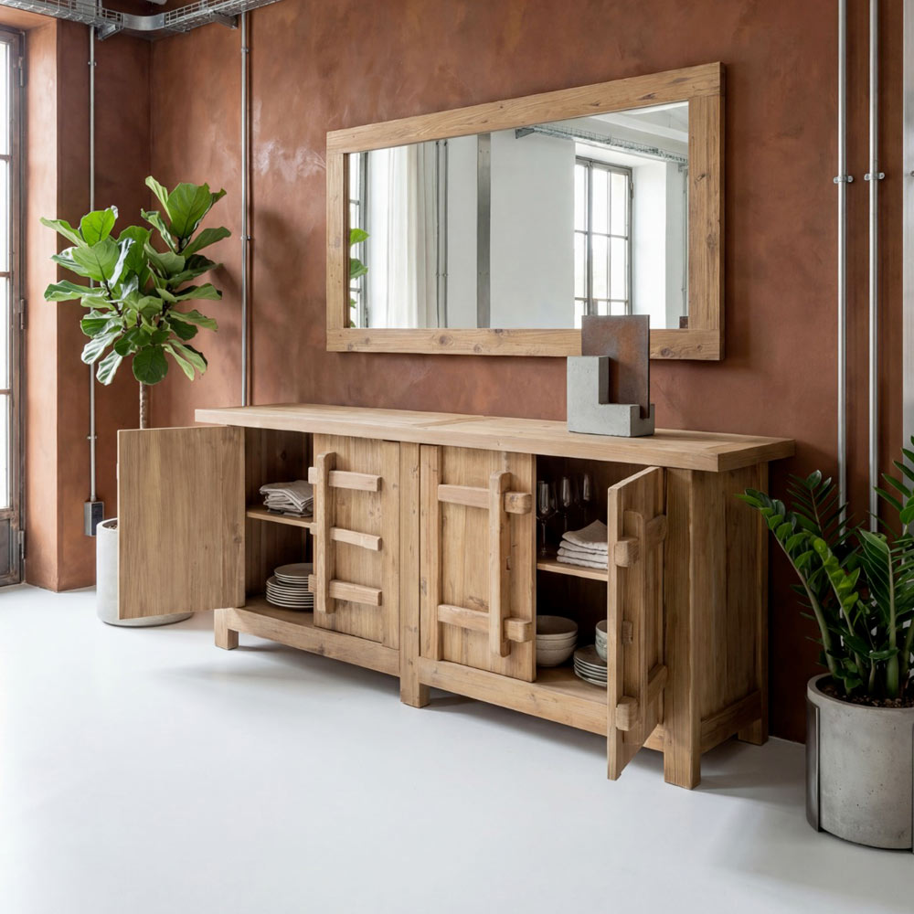 Su diseño limpio y proporciones equilibradas hacen que este espejo sea perfecto como elemento tanto funcional como decorativo, adaptándose fácilmente a contextos de estilo rústico, campestre o natural contemporáneo.