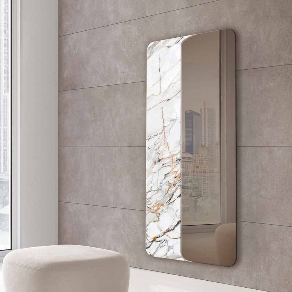 Espejo de pared con inserto de cerámica o madera, artículo fino hecho en Italia.