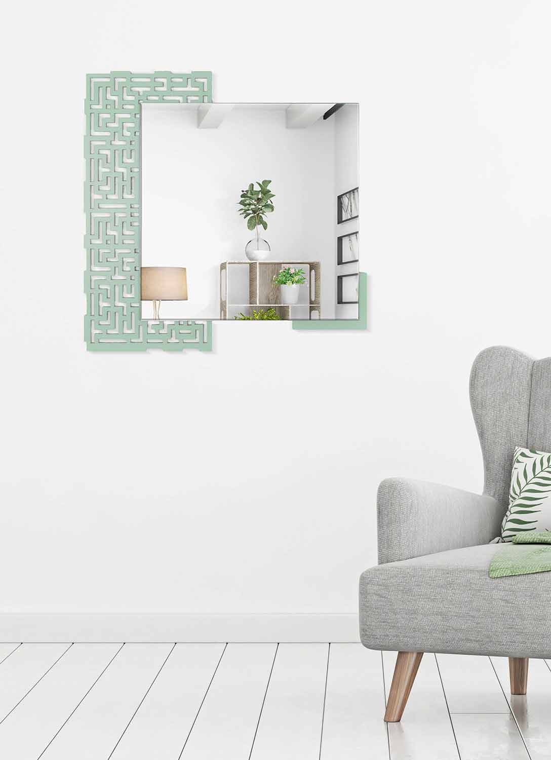 Espejo de pared moderno, diseño geométrico cuadrado, en madera de color verde y hecho en Italia.