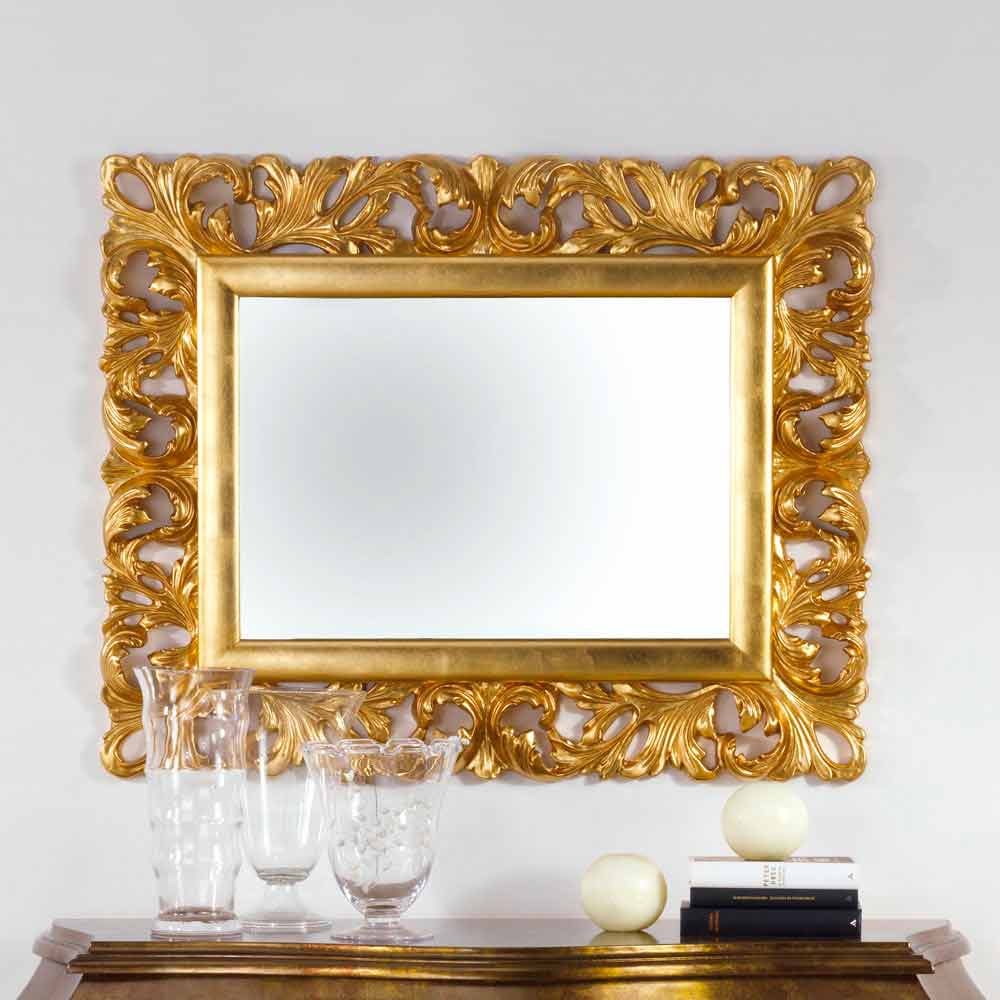 El espejo Gudin se caracteriza por una artesanía llevó a cabo utilizando materiales de alta calidad y el uso de la experiencia de artesanos italianos expertos. El bastidor está hecho de madera decoradas con tallas. acabado en pan de oro. Cristal de espejo, de 4 mm de espesor. Made in Italy. De cuelgue tanto horizontal como vertical.