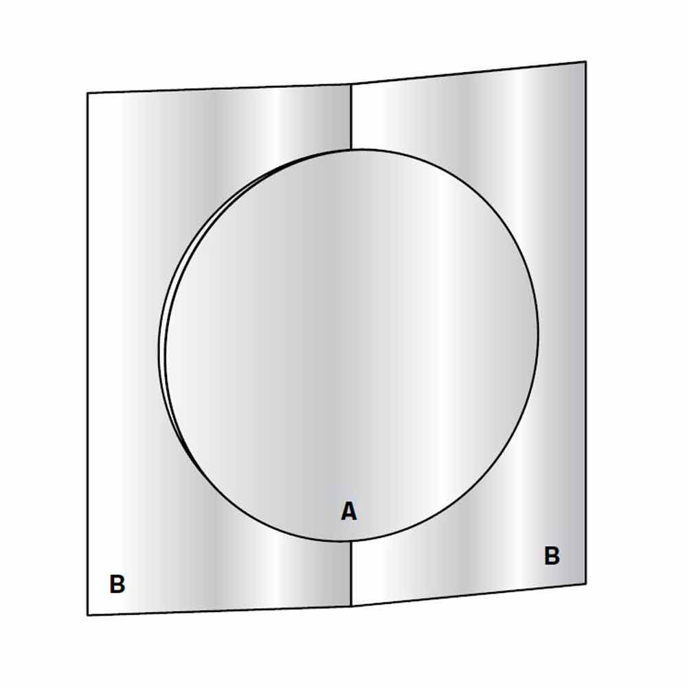 Esta hecho con una estructura compuesta por dos paneles (B) levementes inclinados y un tercero (A) central circular.