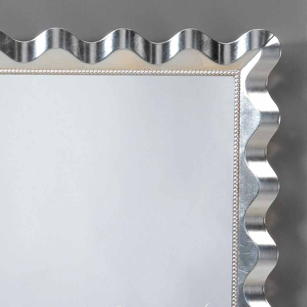 El Espejo de pared del carril se caracteriza por una artesanía realizada con materiales de alta calidad y el uso de la experiencia de hábiles artesanos italianos. El bastidor está hecho de madera y tiene bordes ondulados. El perímetro del espejo está decorado con perlas. 4mm espejo de cristal. Made in Italy. Para colgar, ya sea vertical u horizontalmente.
