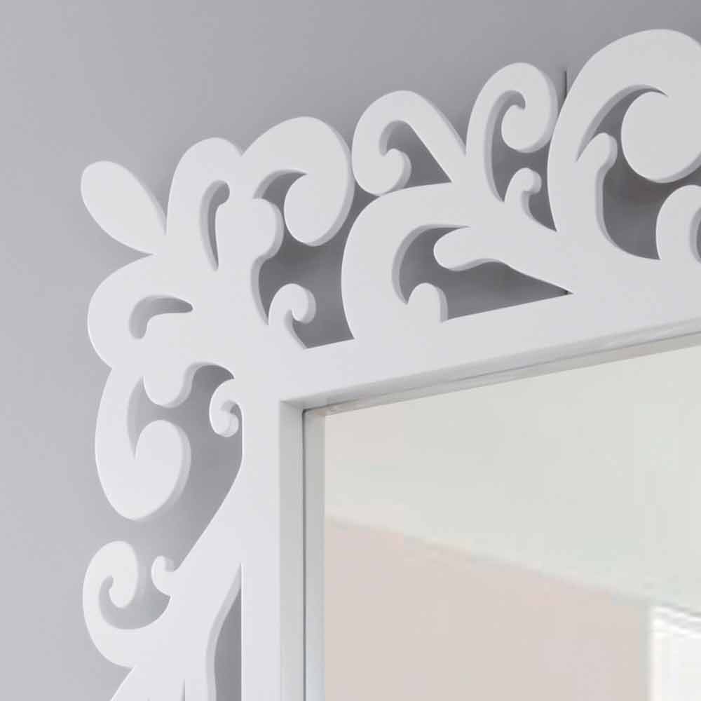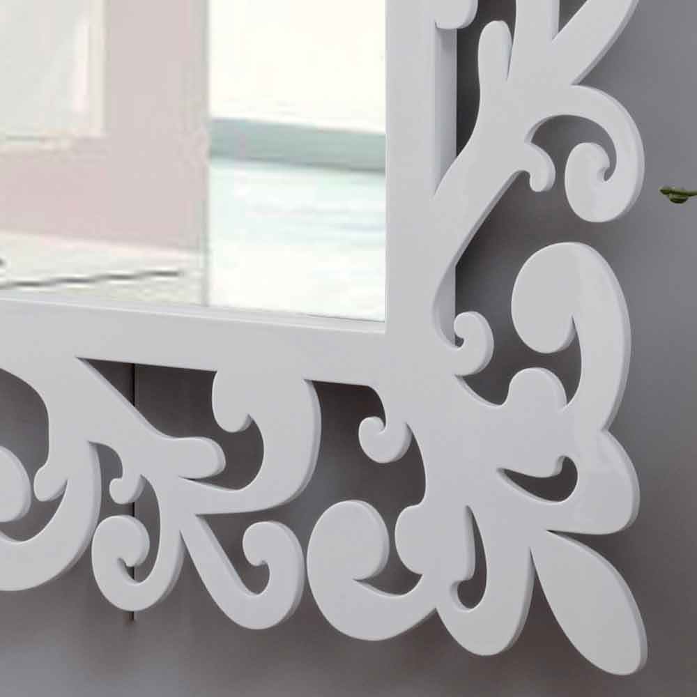 Espejo de pared rectangular lúdico u opaco blanco, diseño moderno con marco de madera hecho en Italia.
