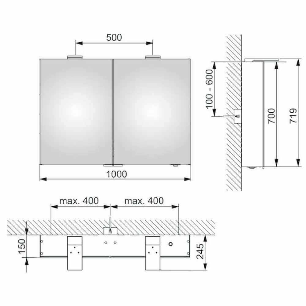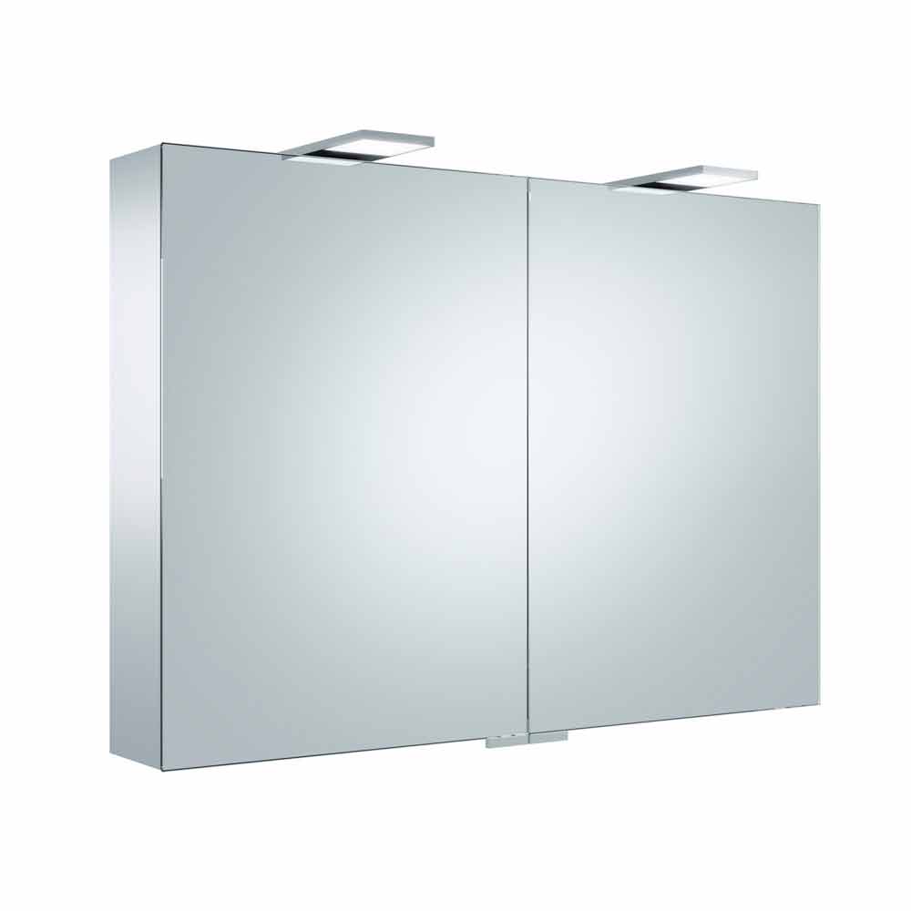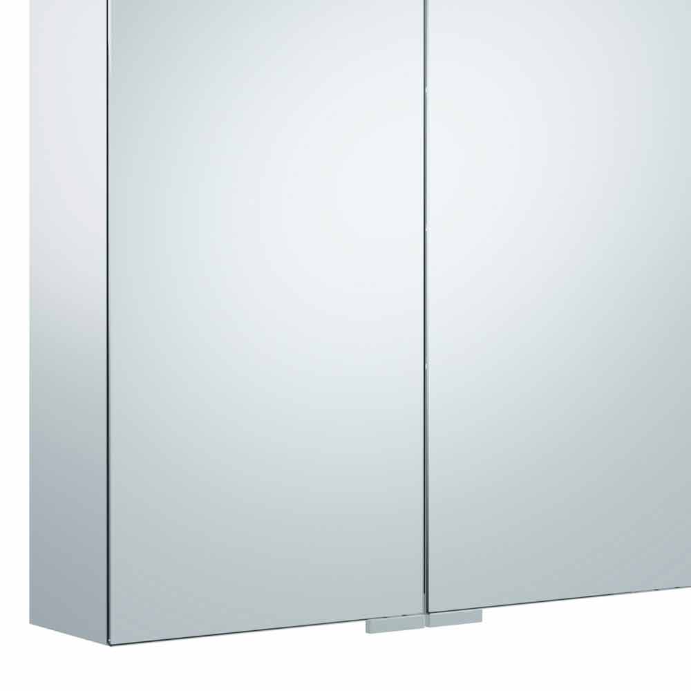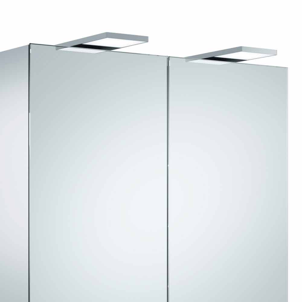 Espejo contenedor con 2 puertas batientes espejadas (también internas) y retrovisores laterales equipados con iluminación LED.