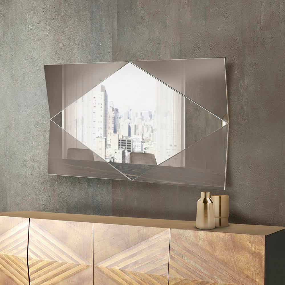 Espejo de pared con esquinas de bronce o espejo ahumado Made in Italy.