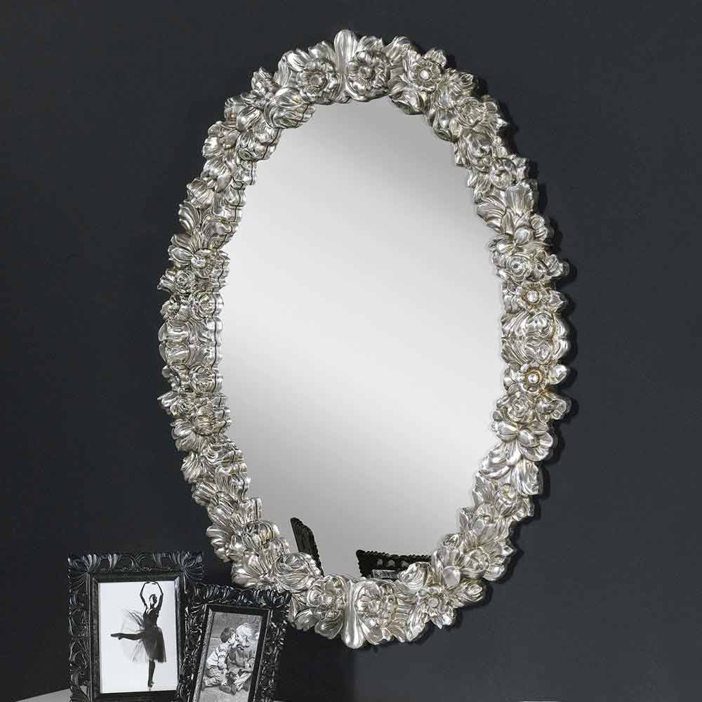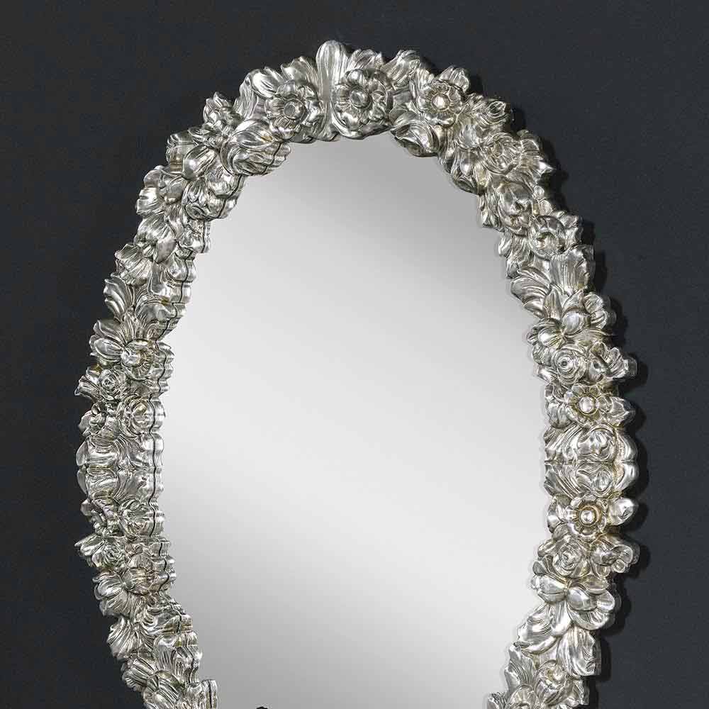 Este espejo es un verdadero triunfo del arte decorativo , un elemento de decoración que transforma cualquier pared en una galería de estilo. El marco es un derroche de flores esculpidas por expertos, cada una de ellas con un acabado en un tono que añade un toque moderno al clásico motivo floral.